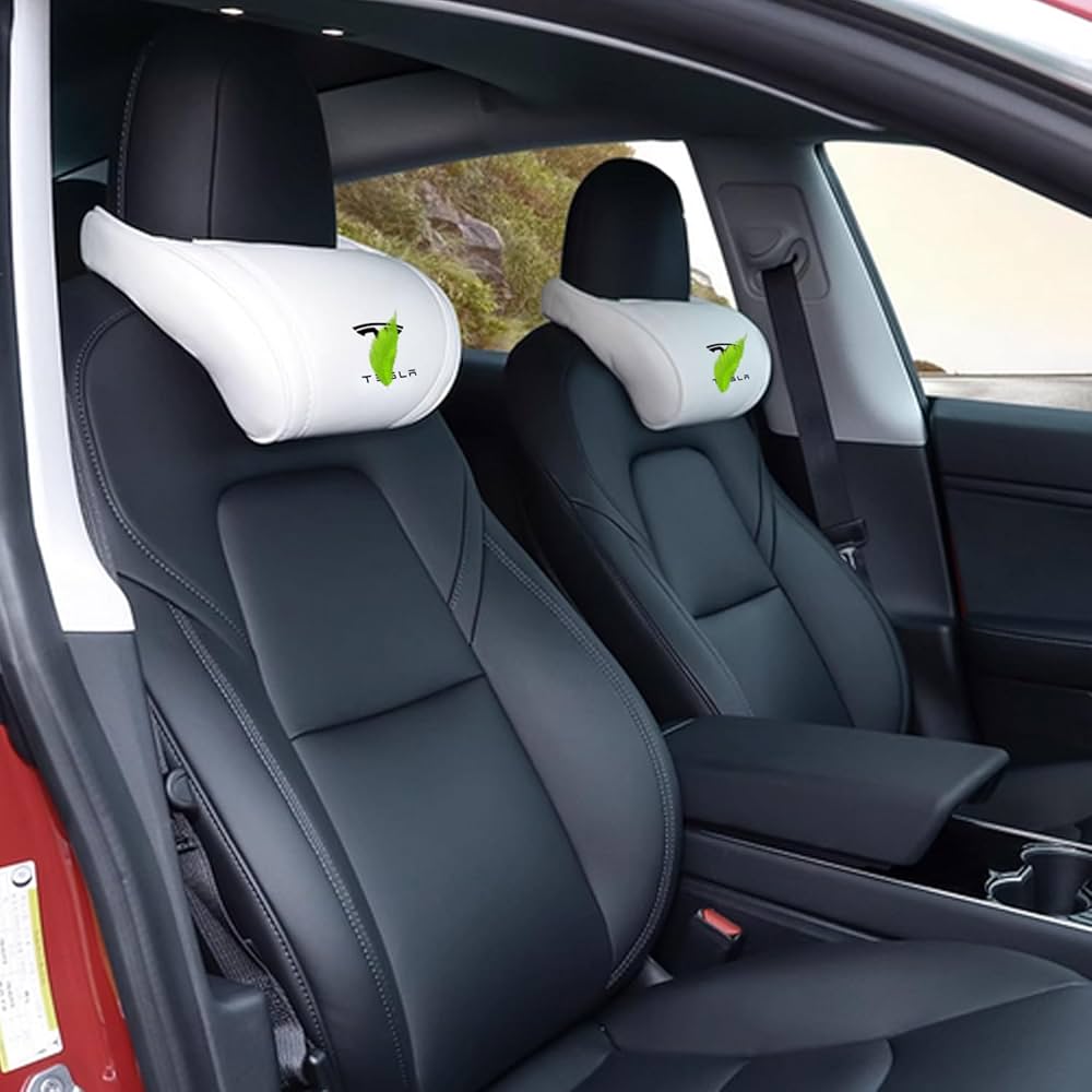 Arcoche Cuscino Poggiatesta Per Tesla Model 3/Y/S/X, Cuscino Per Collo Auto Tesla Memory Foam In Vera Pelle, Cuscino Per Collo Per Seggiolino Auto, Accessori Tesla Modello 3 Y S X (1PC Bianco