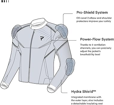Membrana Integrata | Gilet Isolante Rimovibile | Protezioni Gomiti e Spalle livello 2 | Taglie fino alla 4XL. Dimensioni PRO-SHIELD SYSTEM - le protezioni per gomiti e spalle migliorano la tua sicurezza POLIESTERE 600D, POLIESTERE RIPSTOP - materiali resistenti al laceramento 1 Power-Flow System 2 Membrana EASY FIT SYSTEM - regola la giacca alla tua silhouette regolando la circonferenza del polso e della vita Giacca Moto Uomo 4 Stagioni OZONE MOTO Tour III Giacca Da Moto Uomo | Tessile | Membrana Impermeabile Reissa | Fodera In Thermolite | Protezioni Per Gomiti E Spalle | 8 Canali Di Ventilazione Giacca Per Moto Uomo POWER FLOW SYSTEM - grazie a 4 canali di ventilazione, è possibile regolare precisamente il livello di traspirabilità della giacca