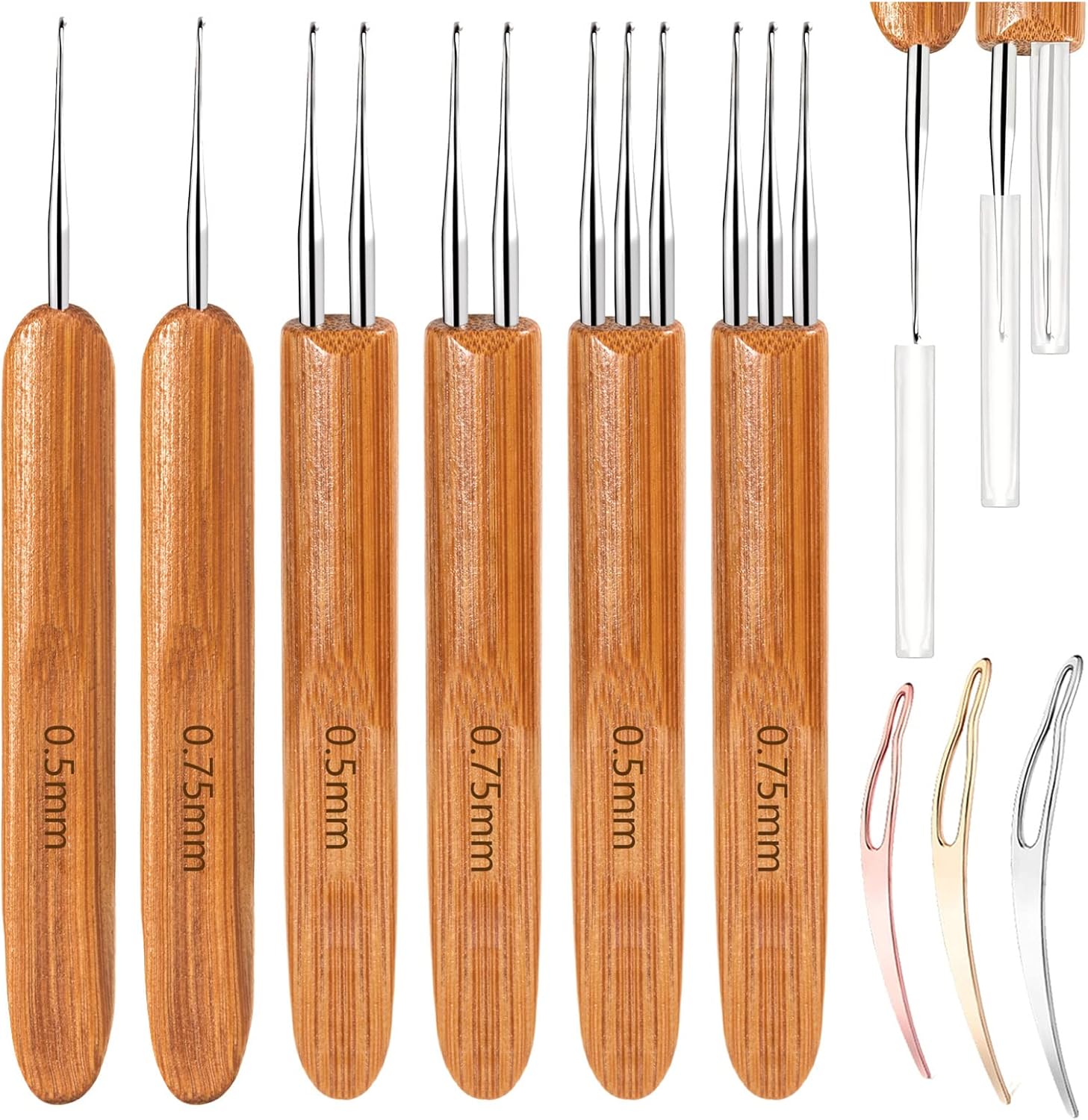Dreadlock Uncinetto Set Tessitura Dei Capelli Ago Per Intrecciare Lega Di Legno Di Bambù, Strumento Per Treccia Rapida Per Acconciatura Efficiente (0,5 Singolo Doppio Tre+DH