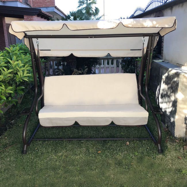 Tettuccio con angolazione regolabile • Struttura resistente al maltempo e di facile manutenzione • Dondolo da giardino dotato di due vassoi pratici ai lati per appoggiare bevande • Può sostenere un carico massimo di 340kg Dimensione del letto: 160L x 100P cm. Altezza seduta: 43 cm COMFORT ALLA TUA PORTATA: Il dondolo per esterni è dotato di due vassoi pratici ai lati della struttura per appoggiare le tue bevande. DESIGN 2 IN 1: Il nostro dondolo da giardino è convertibile in un letto comodissimo grazie allo schienale ribaltabile per permetterti di goderti fino in fondo il relax all'aperto DIMENSIONE: Dimensione generale: 200L x 120P x 164A cm. Letto Da Giardino DecHome - Dondolo 2 Posti In Acciaio E Tessuto Teslin Con Tettuccio Regolabile E Cuscini 138x106x174 Cm, Beige Dondolo Da Giardino Letto STRUTTURA STABILE: Costruito con un telaio in acciaio verniciato a polvere, il letto a dondolo può sostenere un carico massimo di 340 kg di peso.
