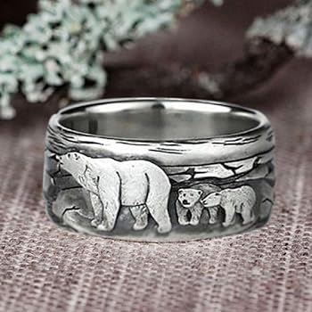 PikaLF Anello Orso Per Uomo, Anello Testa Di Orso Vichingo Norreno, Anello Animale Retrò Con Orso Inciso E Foresta, Anello Amuleto Totem Orso Vintage, Anello Motociclista Hip Hop (11.5
