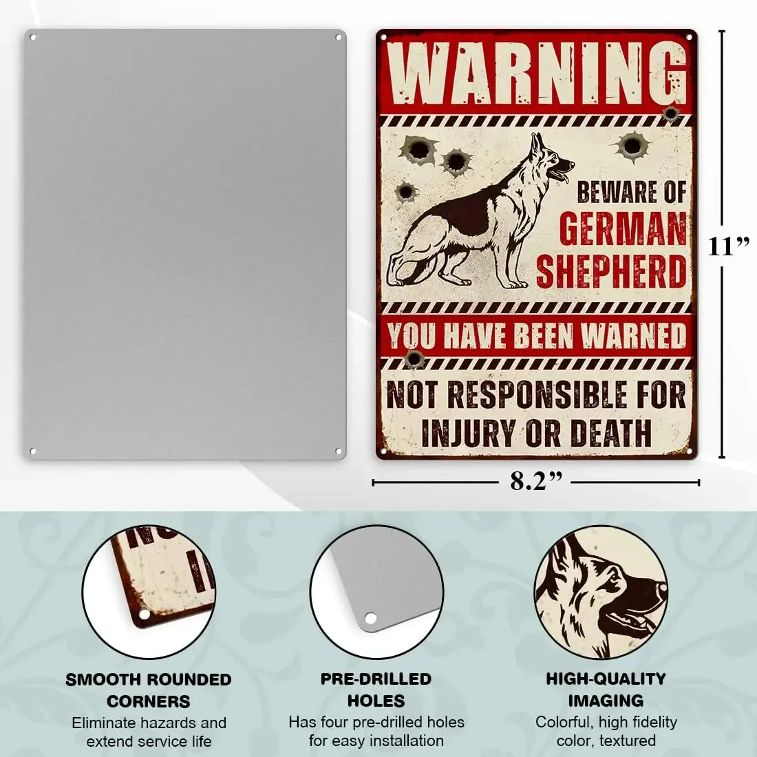 Photect Beware of the Dog Sign Warning Tin Signs Beware of Dog Signs for Fence Keep Gate Shut 7.9'' x 11.8'' dog warning sign Outdoor Gate Rust Weatherproof for Fence Door(Text Style) 36 £6.29 £ 6 . 29 Il colore potrebbe essere leggermente diverso a causa delle diverse impostazioni dello schermo. Facile da pulire: Il nostro cartello per cancello per cani da esterno in metallo non è solo resistente alle intemperie, ma resiste alla ruggine e allo sbiadimento, mantenendo un aspetto fresco per lunghi periodi. Caratteristiche: Nota importante: Per un effetto ideale, assicurarsi che il cartello di chiusura del cancello sia installato in un'area con una buona visibilità. La confezione include: 1 segnale di avvertimento per cani. Attenti Al Cane Personalizzato Photect Beware Of The Dog Sign Warning Tin Signs Beware Of Dog Attenti Ai Cani Cartello La sua superficie liscia lo rende facile da pulire, basta un panno per rimuovere polvere o detriti.