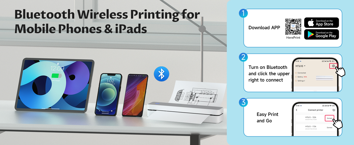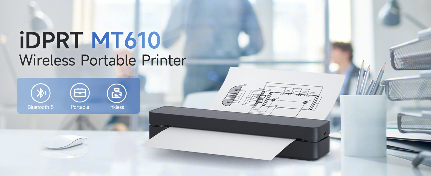 IDPRT MT610pro Portable Thermal Printer, Bluetooth Inkless