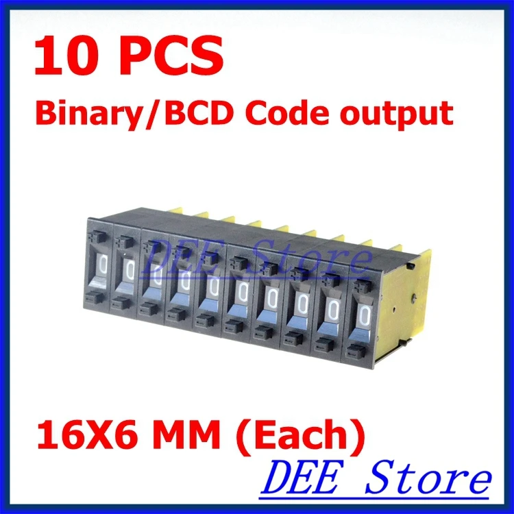 DIP Switch Code BCD Thumb Wheel Switch KM1 0-9 Digital 1. Una sola unità da scegliere tra 0 a 9 cifre totali. 2. Due switch per ottenere una sequenza crescente o ridurre la sequenza. 3. Si prega di prestare attenzione, confezione totale di 10 pezzi di cui hanno bisogno da assemblare per l'uso. Inoltre, per altri calcoli ad alta precisione richiesti, la codifica BCD è anche molto diffusa. uxcell DIP Switch BCD Code Thumb wheel Switch KM1 0-9 Digital White 40 x 24 x 10 mm 10 Pcs Rating Required Select Rating 1 star (worst) 2 stars 3 stars (average) 4 stars 5 stars (best Utilizza codici BCD per preservare la precisione dei valori ed eliminare il tempo necessario al computer per effettuare operazioni in virgola galleggiante.