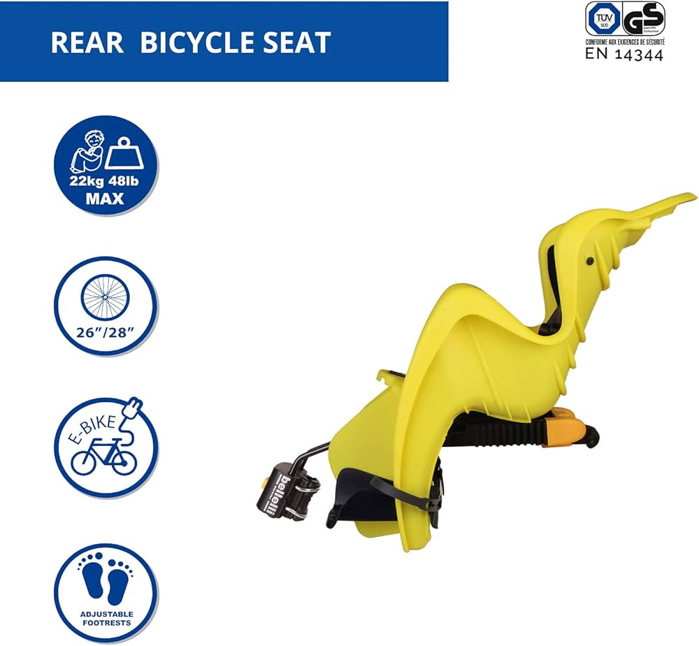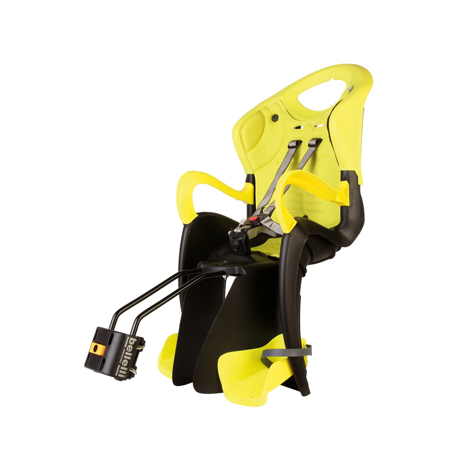 SICUREZZA CERTIFICATA - Cinture di sicurezza a 5 punti di ritenzione regolabili in lunghezza. Fibbione di sicurezza. Piedini regolabili L'altezza dei piedini si regola in 13 posizioni: regolazione per 15 cm. MATERIALI - Soffice cuscino lavabile fissato con clip. Alloggiamento del caschetto in modo da sostenere meglio il collo del bambino. SEGGIOLINO AD ALTA VISIBILITÀ - Grazie al suo colore giallo lime, questo seggiolino aumenta la sicurezza sia di giorno che di notte. Compatibilità e-bike Si può usare anche con e-bike. Versione con fissaggio al manubrio Il seggiolino si fissa al telaio della bicicletta. Su e-bike è compatibile a portapacchi fino a 185 mm. Compatibilità ruote Compatibile con ruote della bicicletta di raggio 26'' - 28''. L'attacco funziona grazie ad una morsa che si stringe sul portapacchi tramite una manopola. Sicurezza Cinture di sicurezza a 5 punti di ritenzione regolabili in lunghezza. Completo di schienale facilmente regolabile in altezza con pratica manopola sul retro. tiger seggiolino posteriore telaio bellelli attacco Compatibile con portapacchi di lunghezza 120-175 mm. Bicicletta Bambino 3 Anni Seggiolino Bici Posteriore Reclinabile Tiger Relax - Sahara - Bellelli Seggiolino Bici Anteriore 15 36 Kg Rispetto degli standard Le omologazioni di prodotto vengono effettuate dal Tüv Süd in Germania, uno degli enti più severi ed autorevoli in materia. Fibbione di sicurezza estremamente comodo per i genitori, si aggancia e sgancia con una sola mano, regolabile in profondità. Età e peso Per bambini fino a 22 kg, da 3 anni a 8 anni.