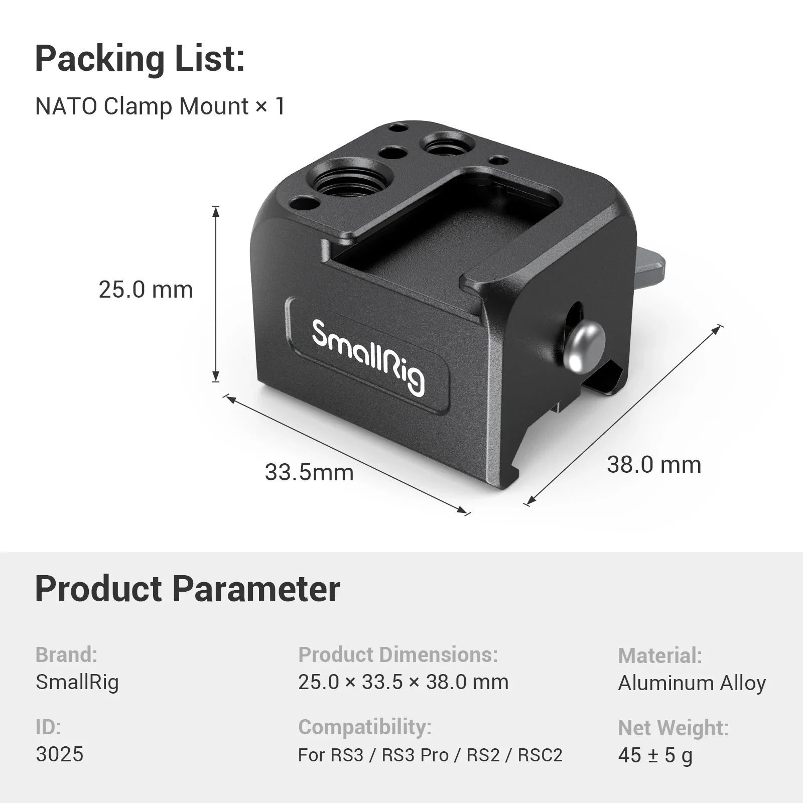 Dji Rs4 Tilta Handheld Gimbal Treppiede Morsetto Compatibile Con DJI RS 2/RS 3 Pro/RSC 2/RS 3 Impugnatura Estesa Accessori Di Montaggio Tramite Cold Shoe NATO Rail E Filetti TGA-TMC Magic Arm Contenuto della confezione: 1 morsetto per power bank. 1 chiave a L. 1 cacciavite a punta. NICEYRIG Morsetto per panca in alluminio per DJI RS 2/RS 3/RS 3 Pro, 50 mm - 88 mm Wide Range, universale con supporto Cold Shoe Mount rimovibile per fotocamera DSLR, sistema Gimbal Dimensioni della confezione: 5,16 x 3,39 x 1,69 pollici Costruito in lega di alluminio: materiale robusto e durevole, costruito per durare a lungo. Si prega di notare: se è necessario installare il supporto freddo per scarpe sul retro del supporto, rimuovere prima la parte di montaggio rapido giunto cardanico con un cacciavite a croce. Punti di montaggio multipli: possibilità di installazione con fori filettati da 1/4 a 20 fori, ad esempio per aggiungere un morsetto a sfera al supporto, adattatore per microfono a forma di scarpa fredda. Non c'è bisogno di preoccuparsi che si stia esaurendo la corrente 【 50 mm (1.96'') – 88 mm (3.56'') Larghezza】 Morsetto regolabile, con profondità fino a 25 mm, si adatta a power bank come Anker, ROMOSS, Miady e altre marche sul mercato, ma anche cellulare, luce a LED, ecc.