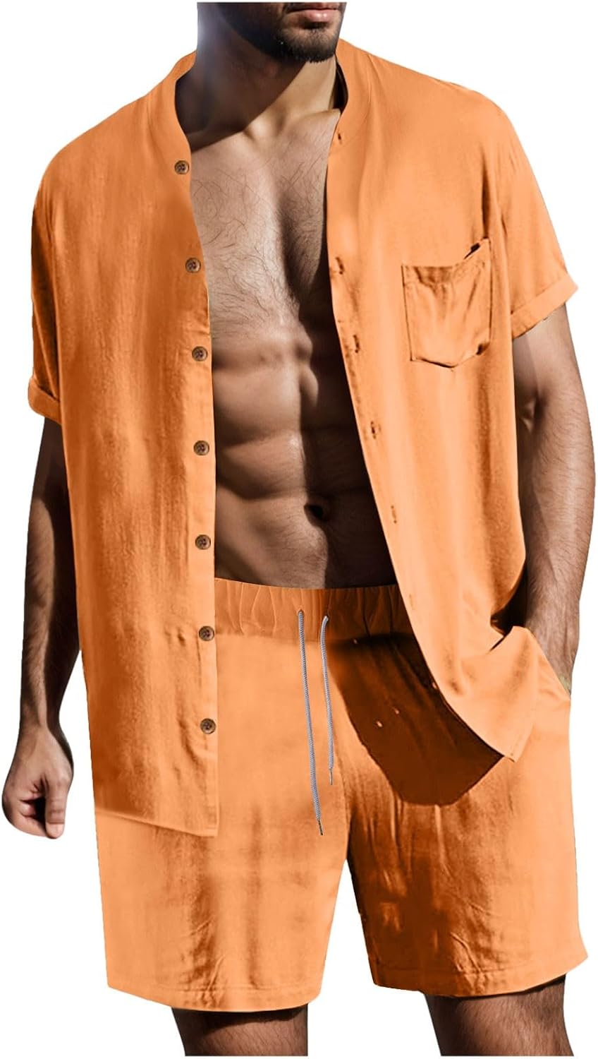 2 Pezzi, Tuta Estiva Da Uomo, In Lino, Tinta Unita, 2 Pezzi, Corta, Con Bottoni, Camicia E Pantaloncini Da Spiaggia, Set Di Pantaloni Corti, In Lino, Leggero, Alla Moda, Set Da Spiaggia, Festival, : Amazon.it: Moda