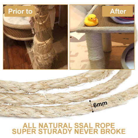 Materiale: la corda tiragraffi per gatti è realizzata in sisal. - Dimensioni: lunghezza: 10 m. Diametro: 4 mm. Multifunzione: le corde di sisal naturale non sono solo resistenti allo strappo ma anche molto morbide sulle piante, il che le rende molto adatte per fissare alberi giovani a pilastri, ma anche per riparare pali graffiati e artigianato Tubo Tiragraffi Ricambio Gatti Spago Di Iuta Naturale In Sisal Cat Corda Per Tiragraffi È resistente e resistente all'usura e può essere utilizzata a lungo È possibile avvolgere la corda intorno a mobili, gambe degli alberi o ovunque il tuo gatto ami distruggere La confezione include: 1 corda tiragraffi per gatti Ampia applicazione: la corda di iuta per animali domestici può essere utilizzata per riparare, ristrutturare o realizzare tiragraffi. Descrizione La corda tiragraffi per gatti è realizzata in sisal, resistente e resistente all'usura; sono fornite due misure di corda; la corda per gatti è facile da indossare, basta legarla ovunque si desidera proteggere; la goccia di iuta per animali domestici può essere divisa in base alle proprie esigenze; la corda di iuta naturale non è dannosa per il corpo del gatto.