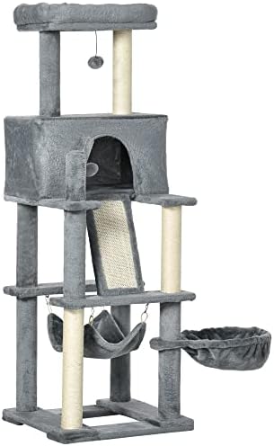 Tiragraffi Per Gatti PawHut Albero Adulti E Gattini Tiragraffi Per Gatti Adulti I TUOI MOBILI AL SICURO: I pali tiragraffi della casa per gatti sono rivestiti con corda in sisal naturale e sono perfetti per soddisfare il naturale istinto di gatti adulti e gattini di affilarsi le unghie. PawHut Albero Tiragraffi per Gatti Adulti e Gattini da 146cm, Pali in Sisal, Piattaforme, Casetta, Lettino e Cuscini Lavabili, Grigio scuro MORBIDO E CONFORTEVOLE: Il rivestimento in peluche rende questa palestra per gatti confortevole sia per giocare sia per rilassarsi con un pisolino. DIMENSIONI: Dimensioni generali del tiragraffi con cuccia per gatti: 60L x 30P x 83Acm. Per gatti con peso inferiore a 4kg. Montaggio richiesto. SOLIDO E SICURO: La struttura del nostro albero tiragraffi per gatti grandi è realizzata in solido legno truciolare, che garantisce una stabilità ottimale e un utilizzo in sicurezza per i tuoi mici. Il tessuto che riveste la castello per gatti può essere rimosso e lavato.