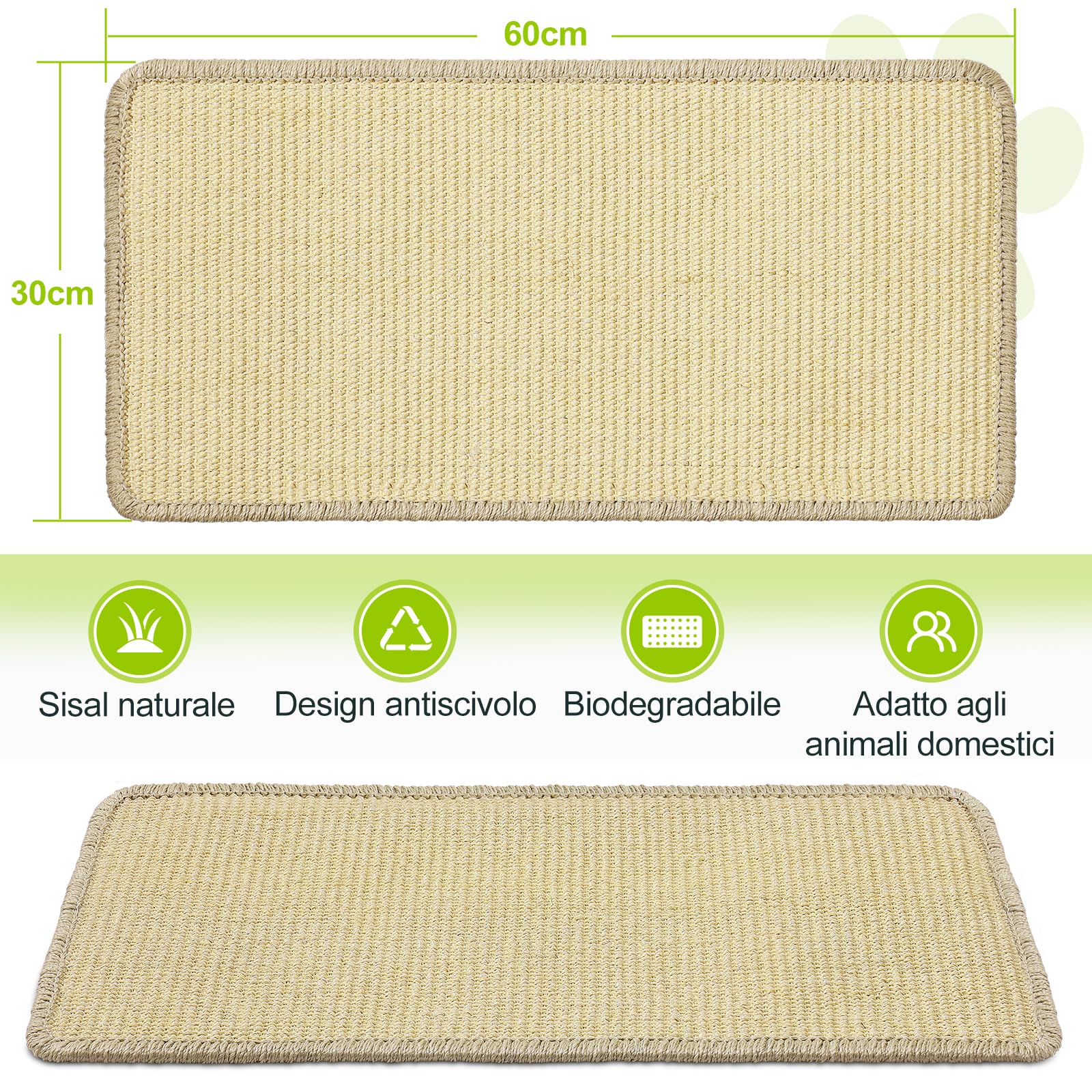 Per intrattenere il tuo gatto e affilargli le unghie, questo tappetino in sisal è la scelta migliore! Materiale durevole : questo tappetino tiragraffi è realizzato al 100% in sisal , il che lo rende durevole e versatile Inoltre, il tappetino in sisal ha u 🐈[TIPS] Prestare attenzione alle dimensioni del tappetino tiragraffi per gatti e scegliere la misura giusta per l'angolo del letto o del divano. È possibile scegliere la dimensione giusta per adattarsi a qualsiasi divano o angolo della parete, con design verticale per graffiare facilmente il gatto. Adatto per i gatti da usare in casa, per farli giocare da soli. Il tessuto è a trama fitta, per soddisfare le esigenze di affilatura degli artigli del gatto. Protezione Divano Graffi Gatto GIBZ Tappetino Tiragraffi Per Gatti In Sisal Per Angolo Di Divano Sedia Accessori Gatto 🐈[Materiale Naturale] Tappetino per gatti in sisal, di durezza moderata, non danneggia gli artigli del gatto.