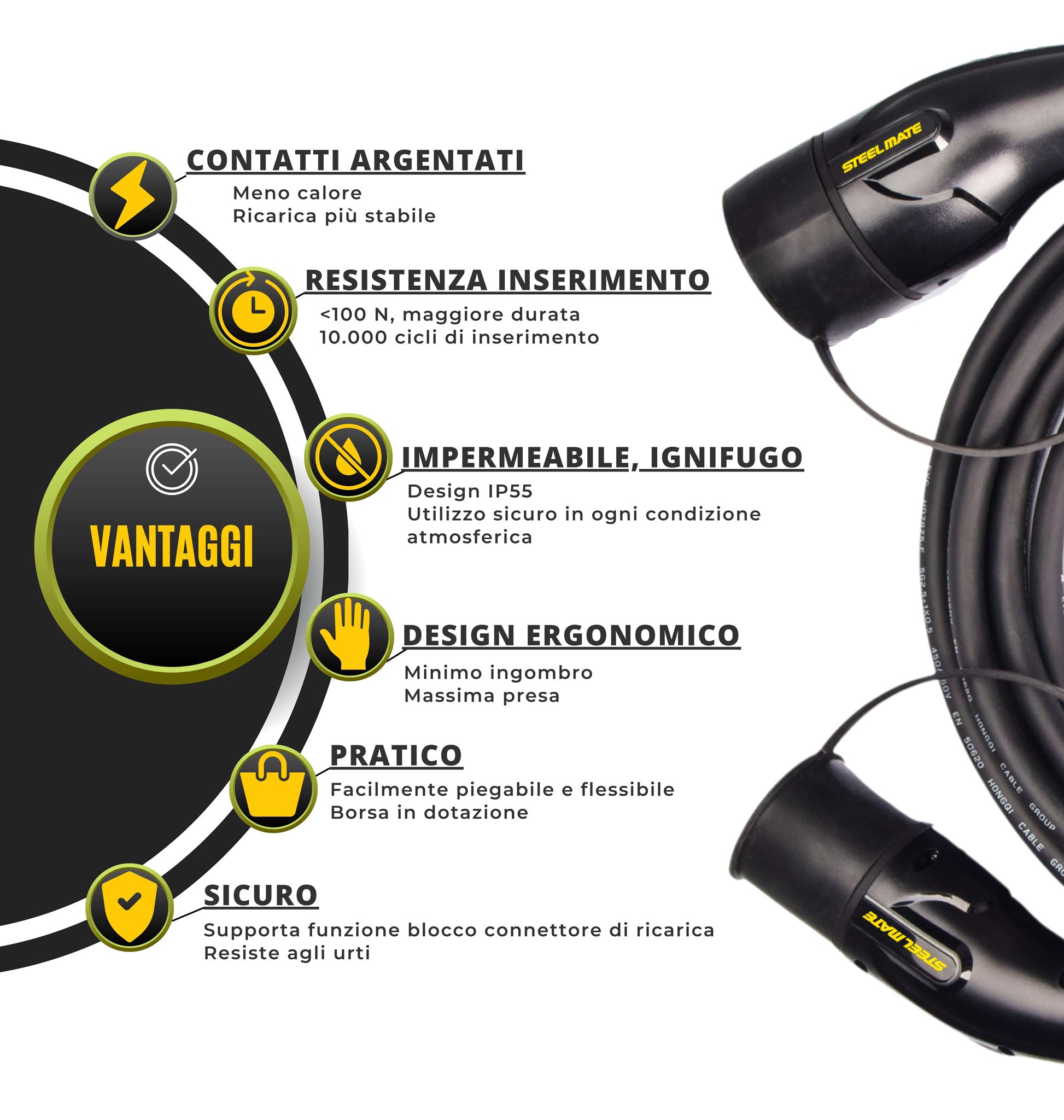 Tomons Cavo Di Ricarica Tipo 2 Con Spina Schuko, 3,5 KW 16 A 6 M, Corrente Regolabile 6/8/10/13/16 A, Caricabatterie Portatile IP66 Per Veicoli Elettrici E PHEV, Con Display : Amazon.it: Auto E Moto