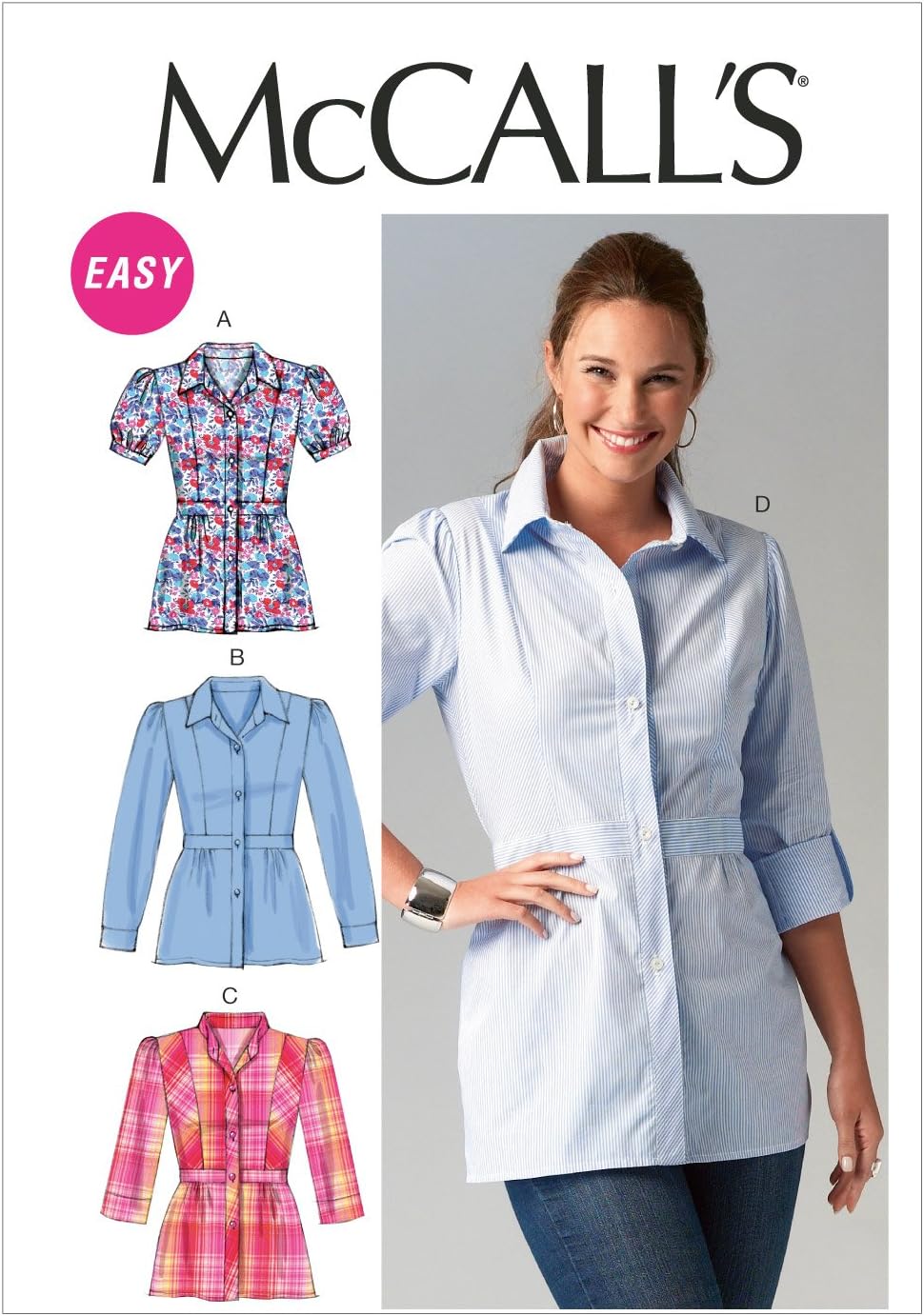 Broadcloth, Linen, Chambray, Shirting, Stretch Woven. Note: Fabric requirement allows for nap, one-way design or shading. Extra fabric may be needed to match design or for shrinkage. NOTIONS: A, B: Six 5 / 8 (1.5 cm) Buttons Dimensioni: E5 (14-16-18-20-22). Vedi immagine aggiuntiva sopra per ulteriori informazioni. McCall's Patterns M7191 Misses' Tops Sewing Template, E5 (14-16- 18-20-22 Per figure rettangolari, clessidra, triangolo e triangolo invertito. Valutazione di cucitura: facile