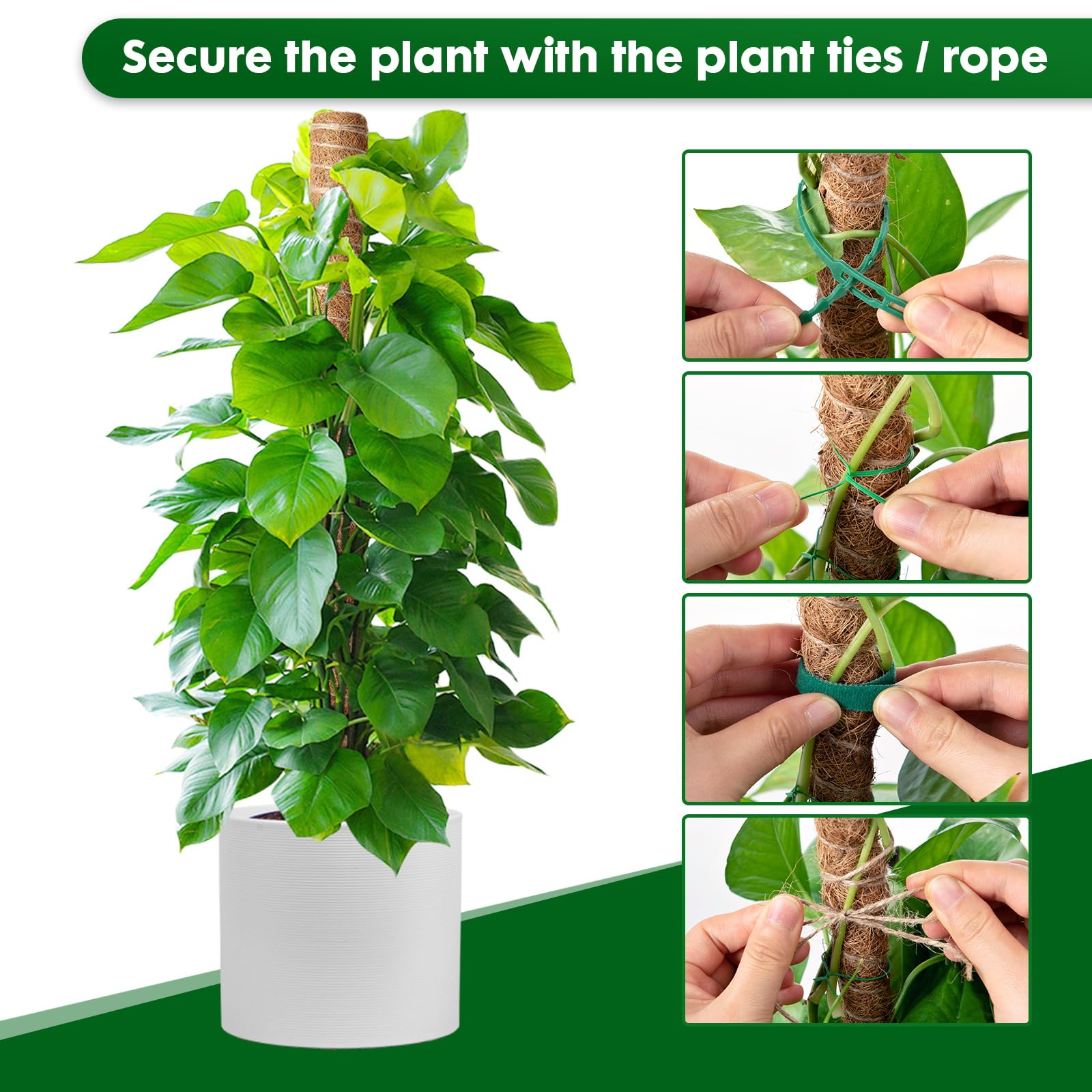 Facile da usare: la punta affilata del bastoncino di muschio facilita l'inserimento in profondità nel terreno. Robusto palo in muschio: il palo in muschio presenta un robusto bastone in legno e una lavorazione eccellente. Può aiutare le piante a trattenere acqua e sostanze nutritive, in modo che possano crescere meglio. Robusto supporto per totem in fibra di cocco: il fondo del palo di muschio è appuntito e facile da inserire nel terreno. Le piante possono essere legate con due corde di fibra Fibra Di Cocco 4 Pezzi Palo Totem In 40cm, 4 Irrigazione A Supporto Piante La cravatta a torsione è comoda per organizzare le piante legandole al bastoncino di muschio. Aiuta le piante a prosperare meglio: il palo di muschio per la pianta del formaggio è realizzato in fibra di muschio di guscio di cocco, che consente al totem di fornire umidità e sostanze nutritive per la tua pianta di chesse. Non è necessario sostituire il vaso, che danneggerà le tue piante. Le tue piante saliranno da sole. Contenuto della confezione: riceverete 4 aste totem in fibra di cocco, utilizzate per sostenere le piante rampicanti.