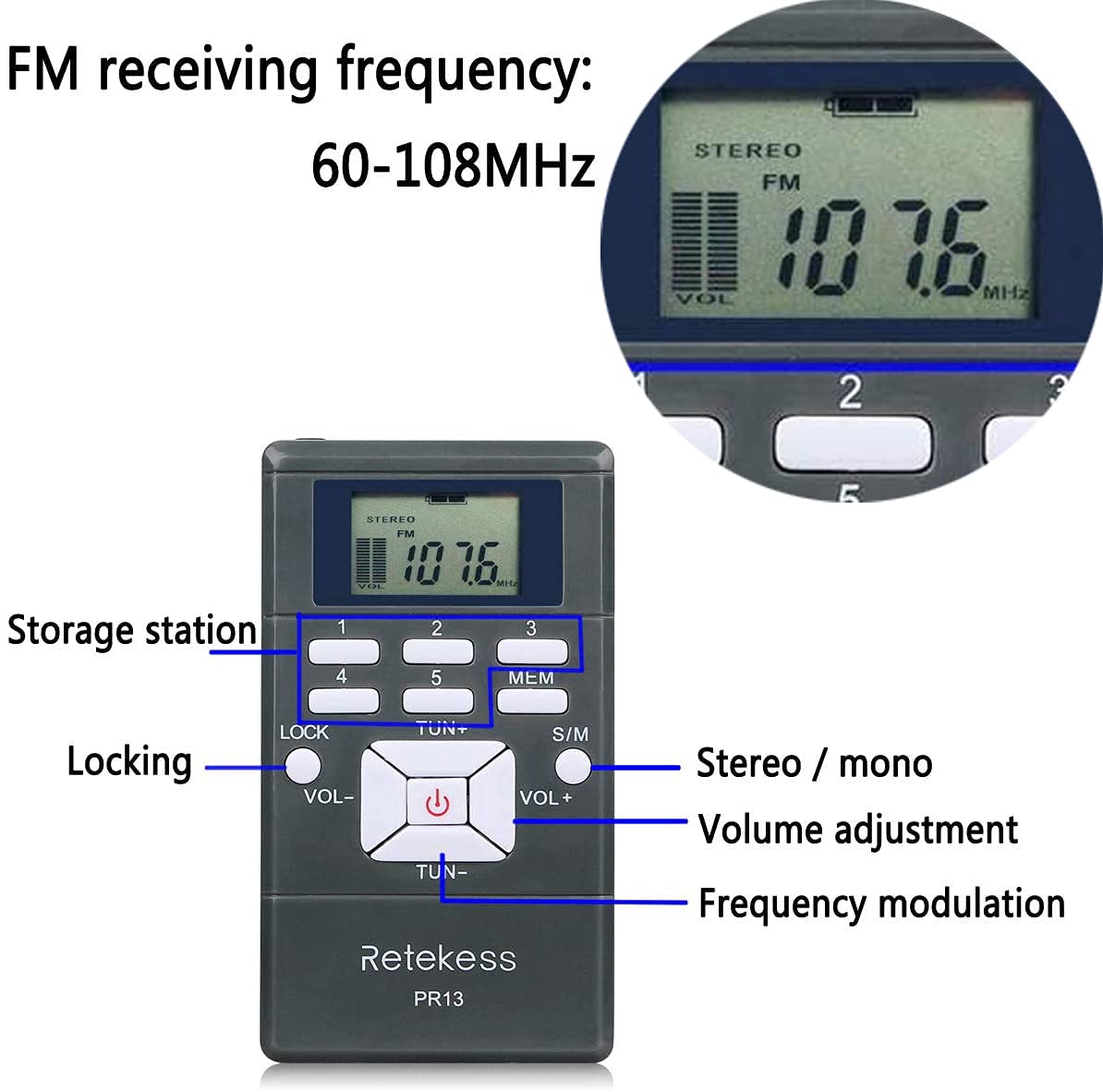E' possibile sintonizzarsi su qualsiasi 5 lingue di stazioni in una conferenza simultanea. Il ricevitore wireless è alimentato da 2 batterie AAA (non incluse); Orologio digitale 24 ore; Volume a 30 livelli regolabile; interruttore di blocco per evitare il funzionamento accidentale Interruttore di blocco Quando si smette di utilizzare questo ricevitore FM, è possibile premere il pulsante di blocco per evitare operazioni accidentali; Premere di nuovo il pulsante di blocco per sbloccare quando in uso Compra Retekess PR13 Tour Guide System Sistema di Guida Turistica Ricevitore FM con Auricolari per Conferenza Interpretazione Simultanea Team di Guida Turistica (10 Pezzi). SPEDIZIONE GRATUITA su ordini idonei L'auricolare deve essere collegato quando si utilizza questo ricevitore; l'auricolare può essere utilizzato anche come antenna FM; estendere il cavo degli auricolari per una migliore ricezione quando si riceve una stazione radio Seleziona le stazioni Ricerca automatica e ricerca manuale delle stazioni radio e può memorizzare 5 stazioni radio preferite, premere i tasti 1-5 per selezionare rapidamente le stazioni. Microfoni Wireless Retekess T130-T131 Tour Guide System, Sistema Di Guida Turistica Retekess Italia Il ricevitore ha una distanza di trasmissione massima di 100 metri (all'aperto) quando utilizzato in combinazione con il trasmettitore, adatto per lavori interni ed esterni; è necessario collegare gli auricolari quando si utilizza questa mini radio 10 x Auricolari stereo in-ear 10 x Cordino Jack per auricolari da 3,5 mm Puoi collegarti a qualsiasi auricolare standard da 3,5 mm e goderti la musica senza essere disturbato. È dotato di un cordino ed è facile da trasportare sul corpo. 10 x Manuale dell'utente