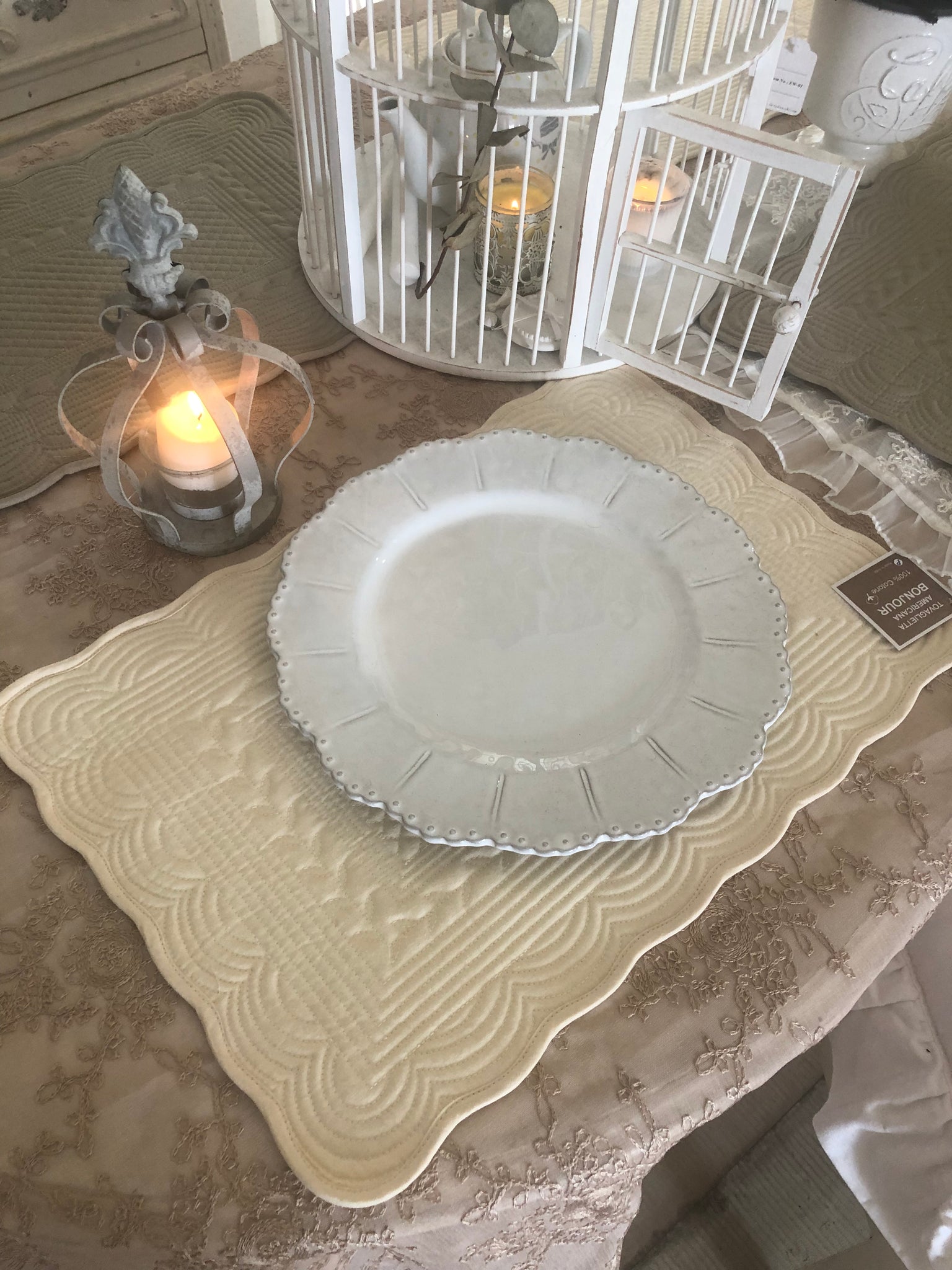 Tovaglietta Con Tovagliolo Fantasia Maiolica In Cotone Cucita A Mano