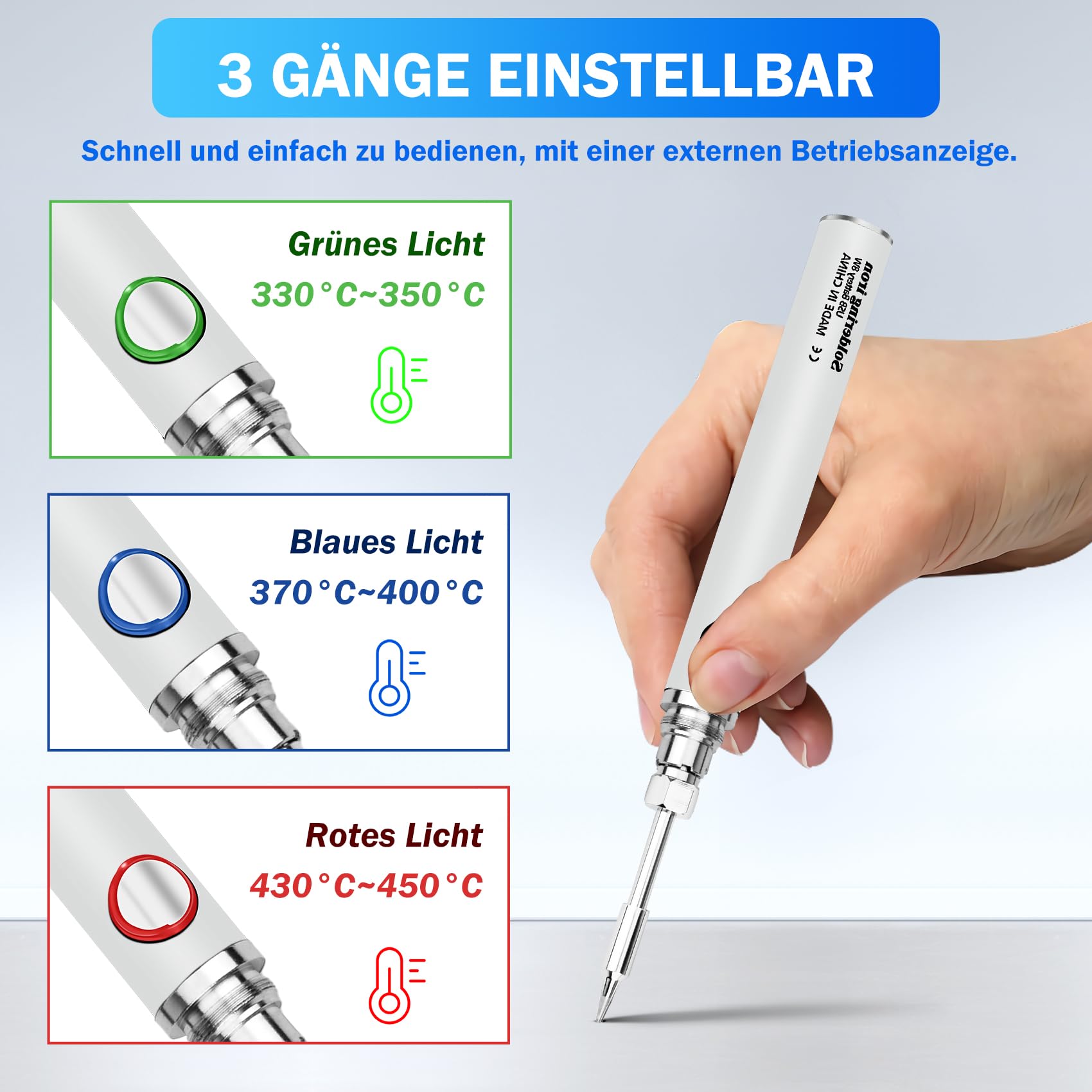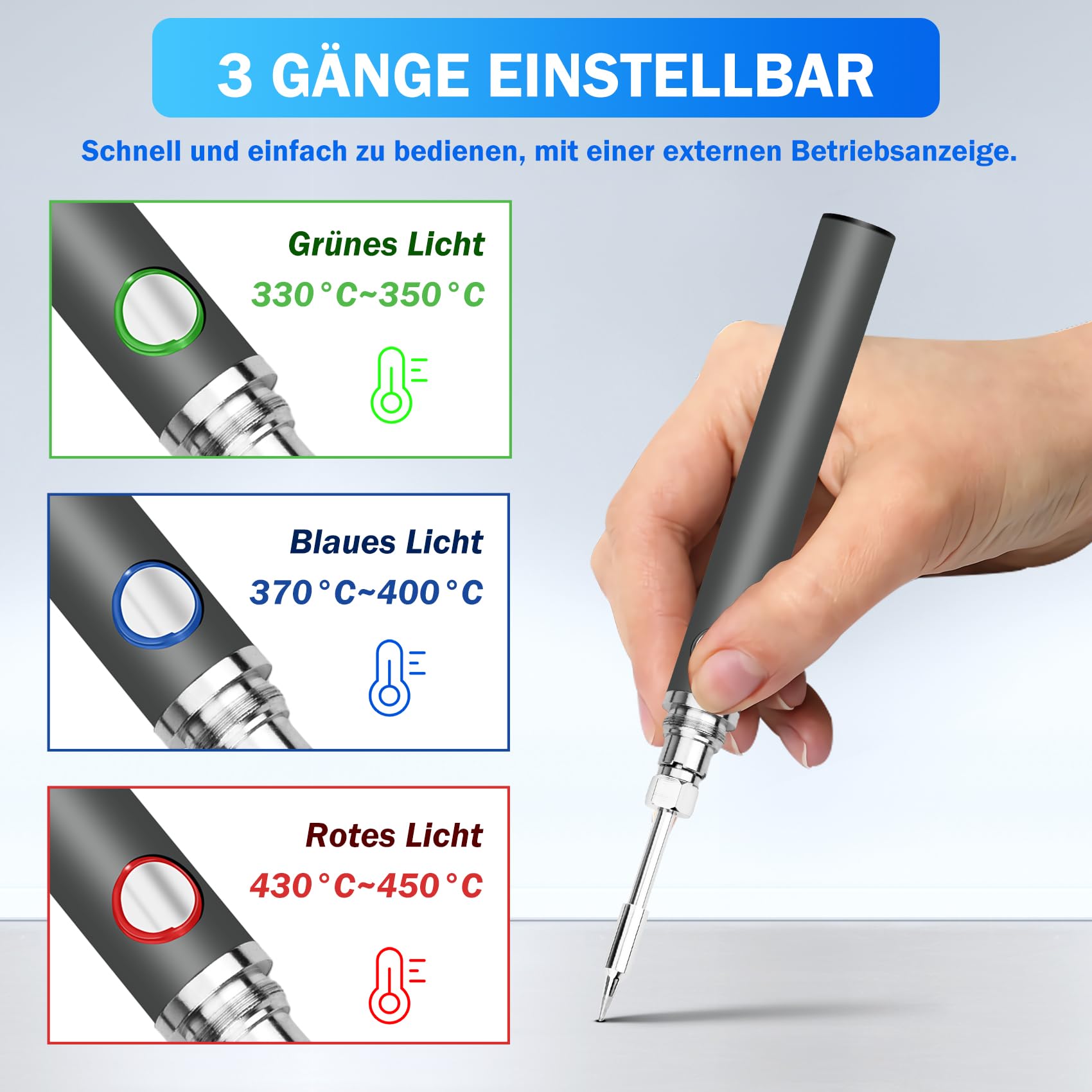 Towwoo Saldatore USB, Saldatore Batteria Con 3 Punte E Coperchio, 330-450 ° C Ricaricabile Rapido Riscaldatore Penna, Saldatore Elettrico Portatile, Saldatore Wireless Professionale