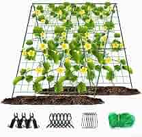 Ampia applicazione: il traliccio di cetriolo è ampiamente utilizzato in giardini e cortili. Questo design può promuovere efficacemente la fotosintesi, permettendoti di avere un buon raccolto. Durerà per diverse stagioni vegetali. CONFEZIONI: - 2 confezioni di tralicci per cetrioli - Supporto per piante/clip/twistti/fascette in plastica. Inoltre il rivestimento verde può rendere il vostro giardino più bello e naturale. Alta qualità: il nostro traliccio per piante da giardino è realizzato in acciaio rivestito in PVC di alta qualità, rendendo il traliccio di cetriolo più resistente e resistente. Informazioni sul prodotto: Nome: traliccio pieghevole a telaio per cetriolo. Sarà imballato con clip di supporto per piante Cravatte Twist Tie Accessori in plastica, fornendo un buon supporto per cetrioli, piselli, zucchine, zucca e viti fiorite o altre piante rampicanti. Dimensioni del traliccio: il traliccio di cetriolo è composto da 2 confezioni. Caratteristiche: - Il nostro traliccio per piante da giardino è realizzato in acciaio rivestito in PVC di alta qualità, rendendo il traliccio di cetriolo più resistente e resistente. Dimensioni: 80 x 90 cm (larghezza x altezza). Colore: verde. - Peso: 3,2 kg. - Confezione: 2 confezioni. Traliccio Per Cetriolo, Confezione Da 2 Graticci Da Giardino Pieghevoli In Metallo, Per Piante Rampicanti Rialzate, Verdure, Include Clip Di Supporto Per Piante, Cravatte A Torsione, Fascette In Facile da montare: il traliccio da arrampicata è molto facile da montare. È facile da piegare e comodo da riporre dopo lo smontaggio. Non sono necessari attrezzi, basta aprire questo traliccio per cetrioli con telaio ad A.