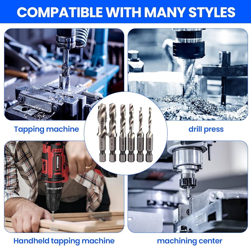 6 Pezzi Punte Trapano Countersink Tap HSS Imposta Manicotti A Scanalatura A Spirale Filettatura Metrica Punte Esagonali M3-M10 1/4per Legno Fai-da-te