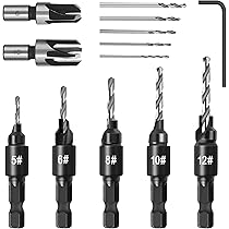 Set Punte Legno KAHEIGN 26Pz Punta Da Trapano Svasatore, 8Pz Punte Da Trapano Per Taglierina In Legno, 7Pz Punta Punte Trapano Legno Set Completo di 15 Punte per Svasatura, 5 Misure, 3 Punte per Misura : 4,4 x 12,7 mm, 4,8 x 12,7 mm, 4 x 9,5 mm, 3,6 x 9,5 mm, 3,2 x 9,5 mm (punte da 11/64“, 3/16”, 5/32“, 9/64”, 1/8“) , tutte con fori svasati a 82° e codoli esagonali da 1/4”, e una chiave esagonale, custodia; Punta per trapano svasatore per le tue esigenze quotidiane e le dimensioni per la maggior parte dei trapani domestici Ampiamente Utilizzato: punte con svasatore Adatto per legno naturale, pannelli di truciolato, pannelli di fibra sintetica, pannelli chimici, compensato, MDF, pannelli per decking, cartongesso e vari pannelli di plastica; Nota: durante il funzionamento il punte trapano legno deve essere fissarlo bene e non allentarlo o spostarlo Trova una vasta selezione di Punta Svasatore a Punte per trapano per il bricolage e fai da te a prezzi vantaggiosi su . Scegli la consegna gratis per riparmiare di più. Subito a casa e in tutta sicurezza con Materiale: Le punte per legno svasatore per metallo sono realizzate in HSS-M2 con scanalature a spirale per un taglio veloce, con buone prestazioni di taglio e resistenza all'usura, e garantisce una lunga durata nella lavorazione legno di legni teneri e particolarmente duri