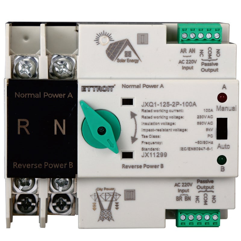 Interruttore Di Trasferimento Automatico A Doppia Alimentazione, Interruttore Automatico E Manuale Di Trasferimento Automatico ZGQ5-100/2P 220V 100A 2P