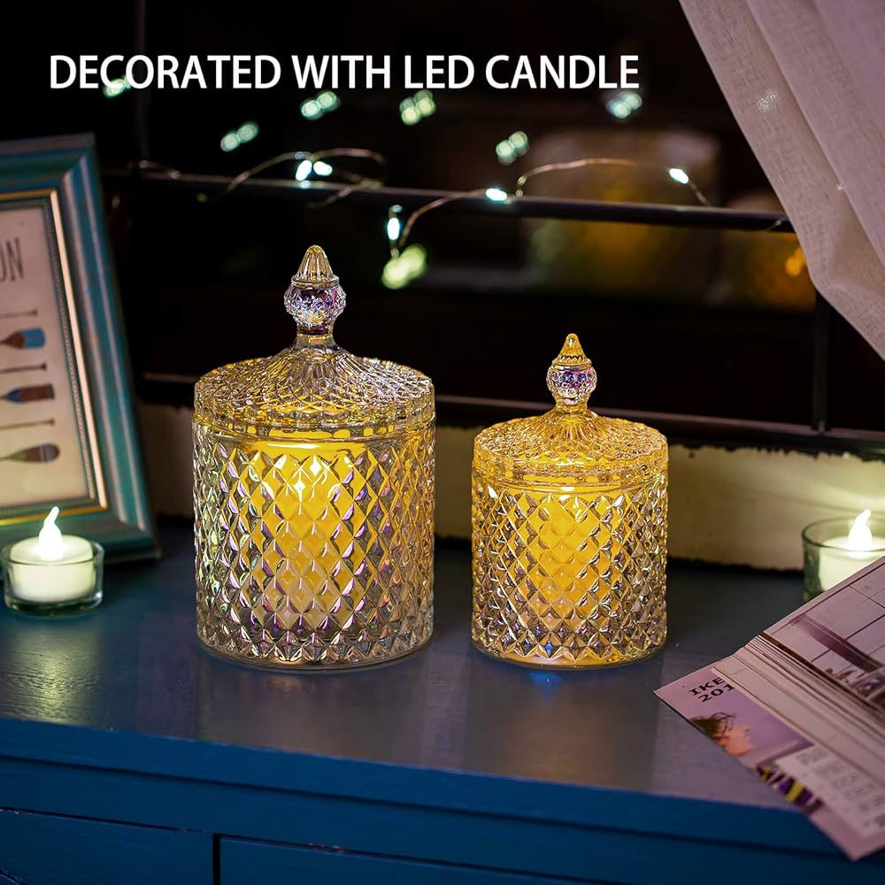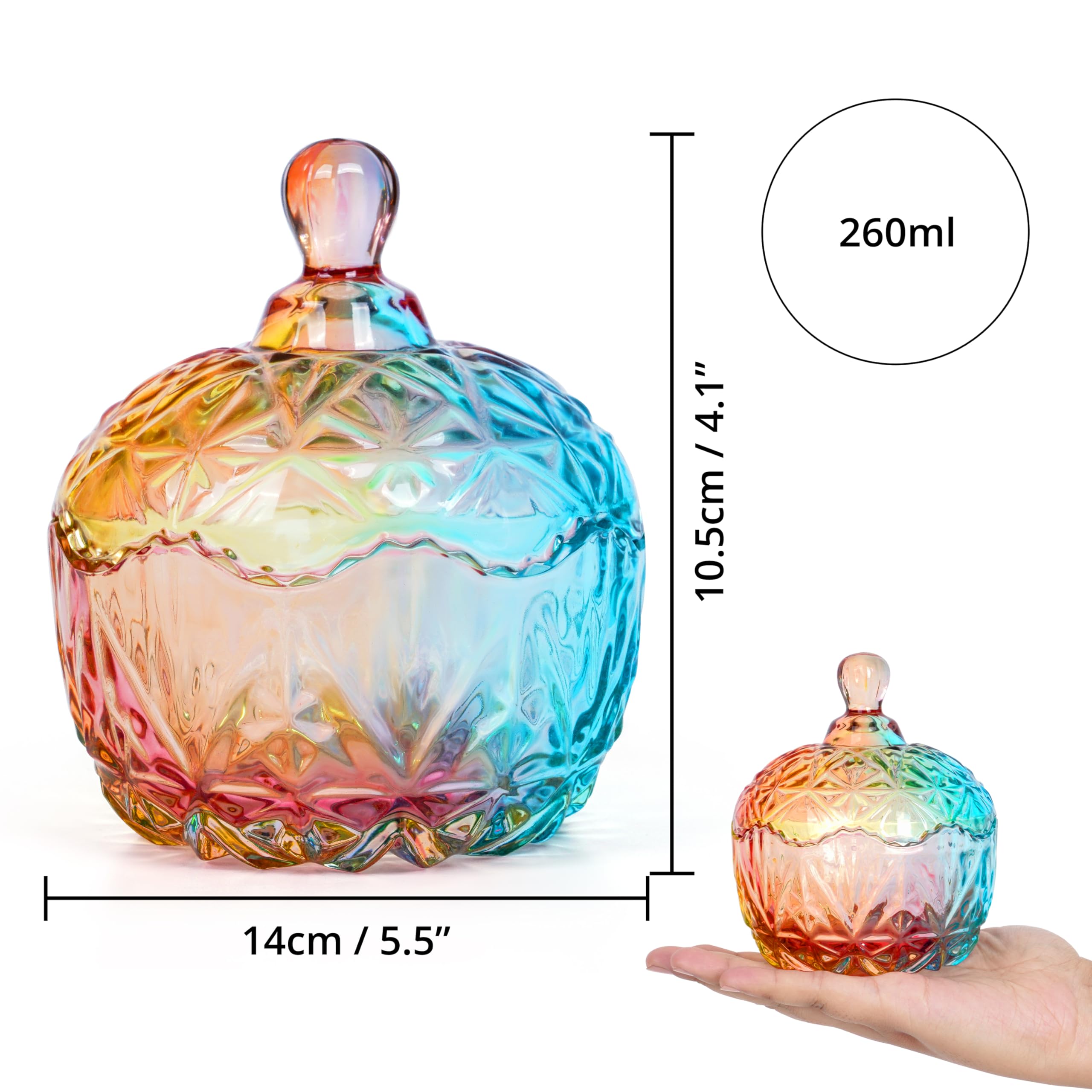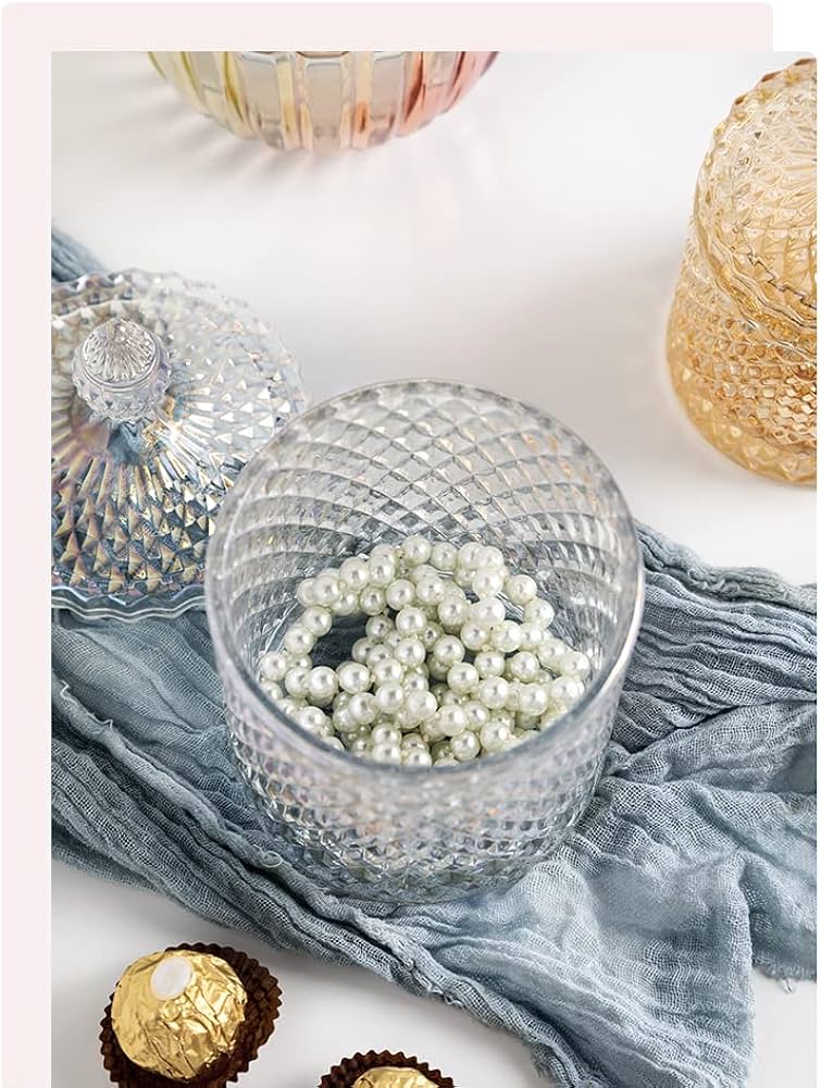 Sotto il riflesso della luce solare e della luce, ci saranno riflessi e scintillii squisiti. 【Design raffinato】 La superficie del contenitore per caramelle ha una struttura a diamante di cristallo, che sembra elegante e unica. Barattoli Vetro Con Coperchio Maestro Craft Barattolo Decorativo In Vetro Trasparente Per Biscotti, Caramelle, Con Coperchio, 300 Ml Barattolo Vetro Con Coperchio La confezione include: 1 bicchiere da caramella in cristallo trasparente piccolo e 1 grande, che offre un ottimo rapporto qualità-prezzo e sono sufficienti per riporre piccoli oggetti sulla scrivania. Il barattolo in cristallo diamantato è inoltre dotato di un coperchio aderente, che non solo previene la polvere ma mantiene anche il cibo fresco e asciutto. 【Ampiamente applicabile】 I contenitori per scatole per biscotti decorativi sono perfetti per soggiorno, toletta, bagno, ufficio, bar, hotel, ristorante, feste, matrimoni, buffet, ecc. 2 contenitori per caramelle in vetro trasparente, con coperchio di cristallo, per biscotti, decorazione per casa, feste, matrimoni, regalo (300 ml + 600 ml) Marca 【Dimensioni appropriate】 La dimensione del piccolo buffet di caramelle è di 8,5 x 14 cm/3,35 x 5,51 pollici, una capacità di 300 ml e la dimensione del grande buffet di caramelle è di 10,5 x 18 cm/4,13 x 7,09 pollici, 600 ml di capacità. 【Spessore e solido】 Il contenitore per biscotti è realizzato in vetro senza piombo di alta qualità, spesso e trasparente. È adatto a diversi stili di decorazione, come lo stile europeo, boemo o retrò.