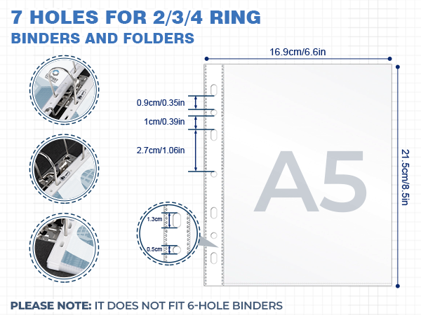 ZOOQUE 100 Buste Trasparenti In Plastica Di Polipropilene,Buste Perforate Standard 7 Fori A5 Buste Portadocumenti Per La Protezione Di Carta,Atti E