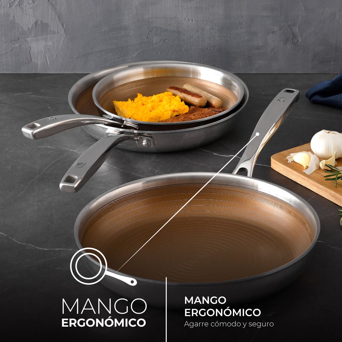 MasterPro Giro 3 - Padella Antiaderente Da 20 Cm - Con Triplo Strato In Acciaio Inossidabile E Alluminio - Manico Ergonomico - Padella In Acciaio Inox - Per Tutti I Tipi Di