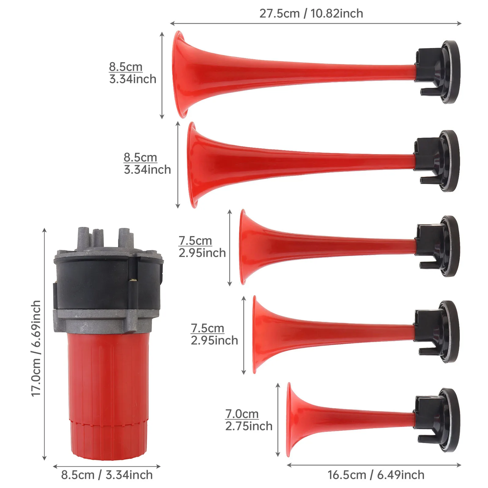Tromba Da Stadio A Gas Tromba D'aria, Tromba Da Treno 12V 150dB Con Tromba D'aria A Compressore Singolo Per Auto Camion Treno Veicolo Motociclistico Tromba 12v [Potente uscita audio] Dotato di 3 altoparlanti, può emettere fino a 125 dB di suono, garantendo la tua sicurezza sulla strada e avvisando efficacemente gli altri. [Design elegante] L'accattivante guscio rosso brillante aggiunge un tocco di moda al tuo veicolo e migliora la visibilità maggiore sicurezza. Le migliori offerte per Music Air Horn 3 Trumpet 12v 125db Musical Sound Air Horn With Air Compressor sono su Confronta prezzi e caratteristiche di prodotti nuovi e usati Molti articoli con consegna gratis [Suono chiaro e forte] Presenta la musica la cucaracha (lo scarafaggio) qualità del suono forte e chiara che attira l'attenzione.