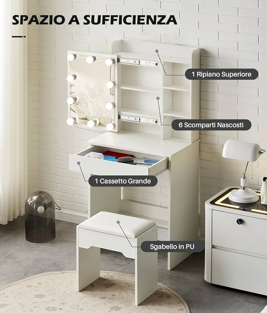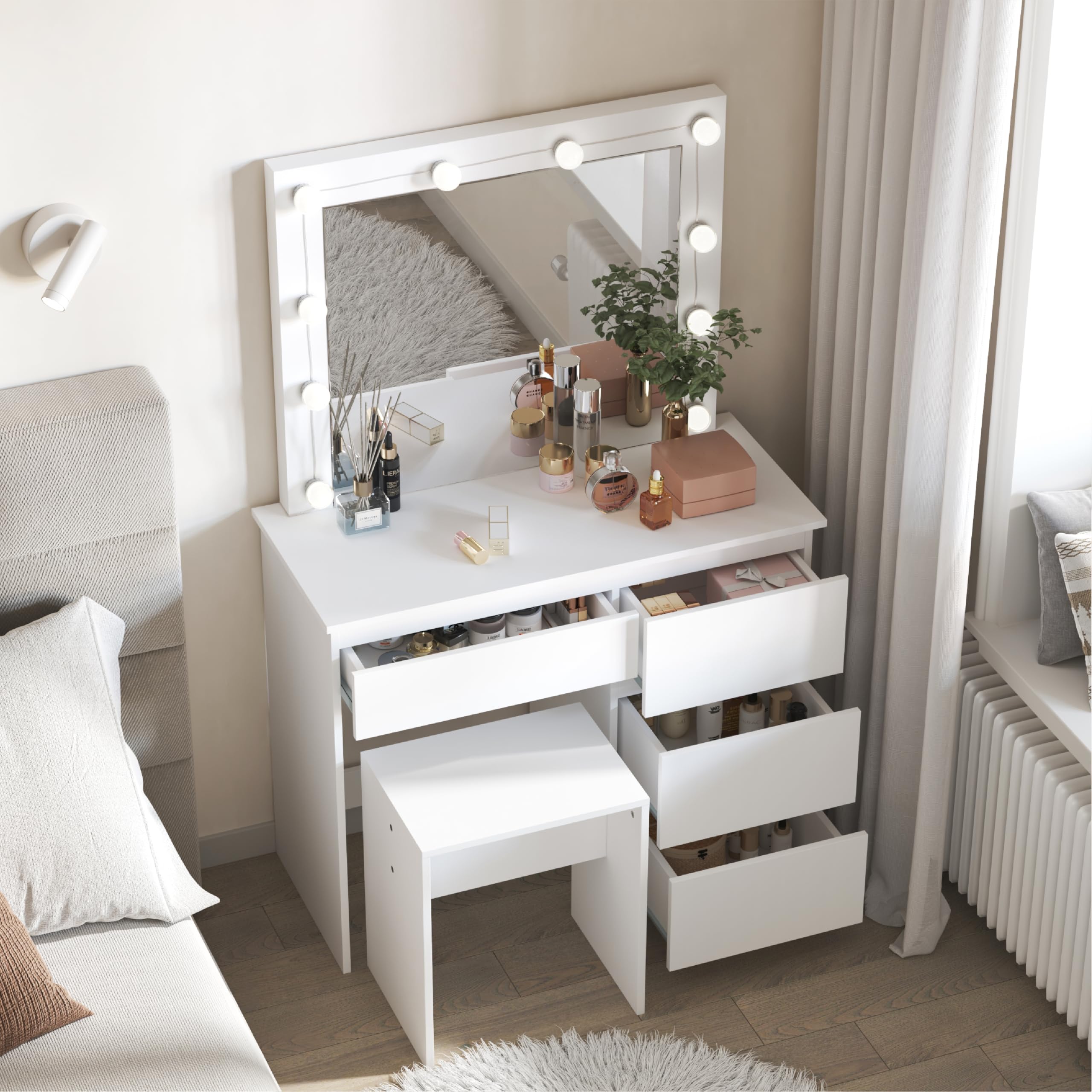 Toeletta Trucco Con Specchio Illuminato A LED, Tavolo Da Trucco Con Cassetto E Sgabello Imbottito, Tavolo Da Toeletta Moderno Con Specchio A Luminosità Regolabile, Per Camera Da Letto ( Color : White