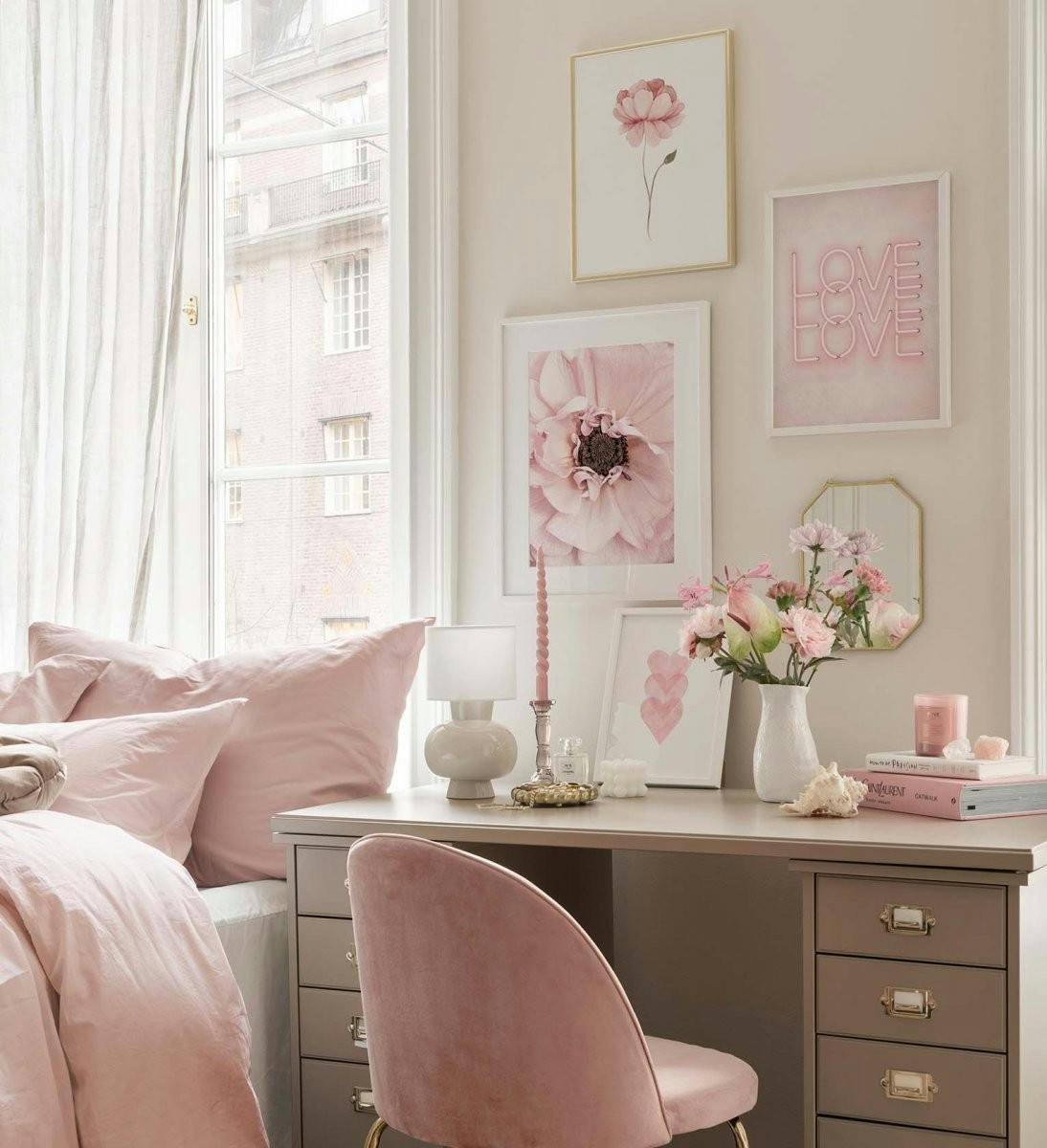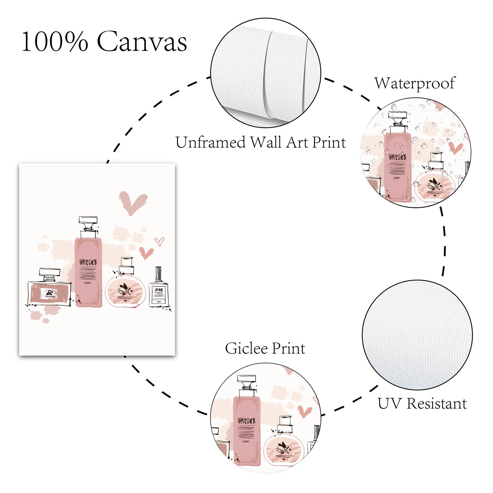 CREATCABIN 4 Pz Rosa Trucco Stampe D'Arte Da Parete Moda Donna Immagine Su Tela Acquerello Decor Dipinti Tacchi Alti Profumo Bellezza Arte Da Parete Disegno Poster Decorazione Da Parete Per 25x20cm
