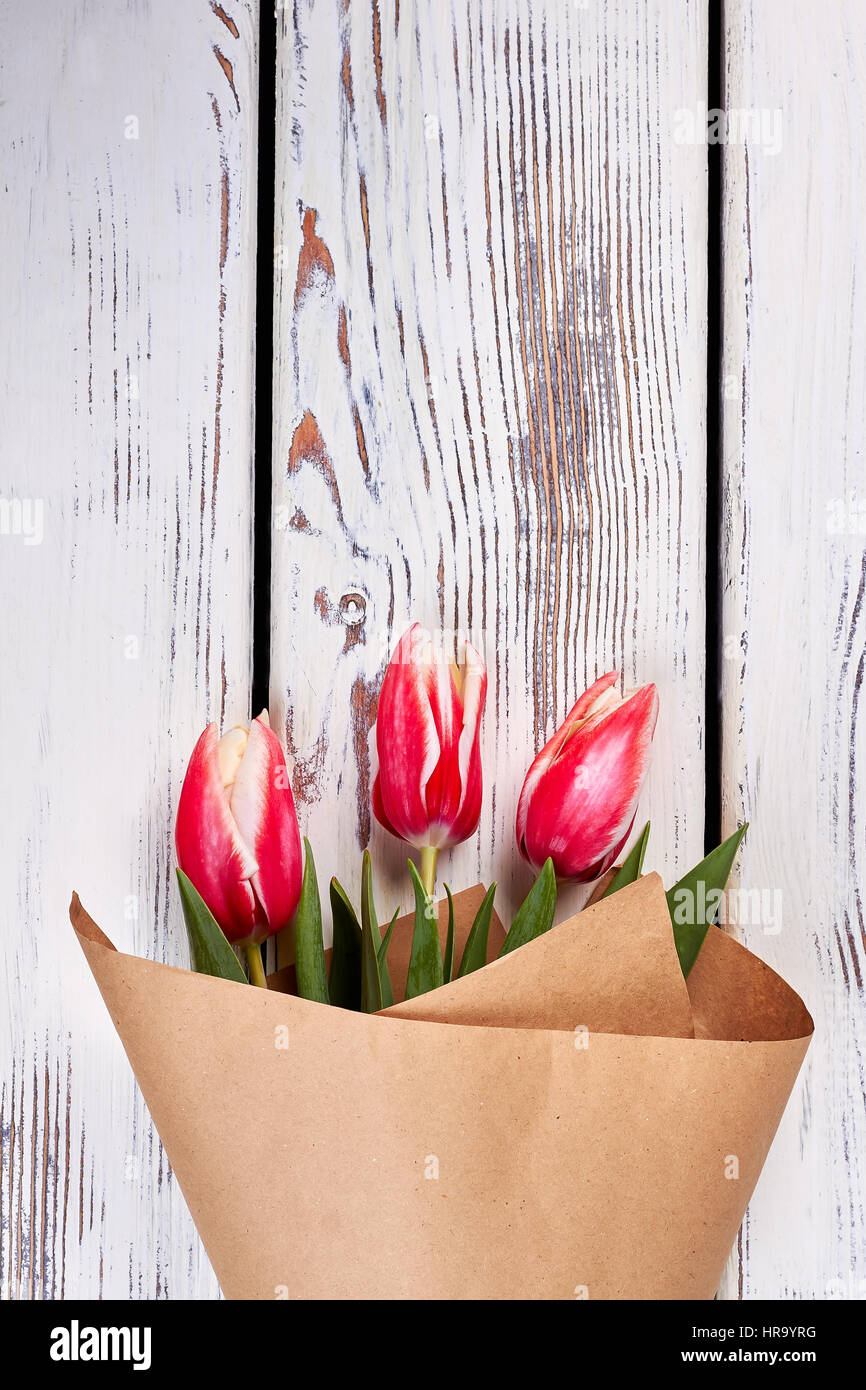 Bouquet Di Tulipani In Legno Bianco Rosso Decorazione