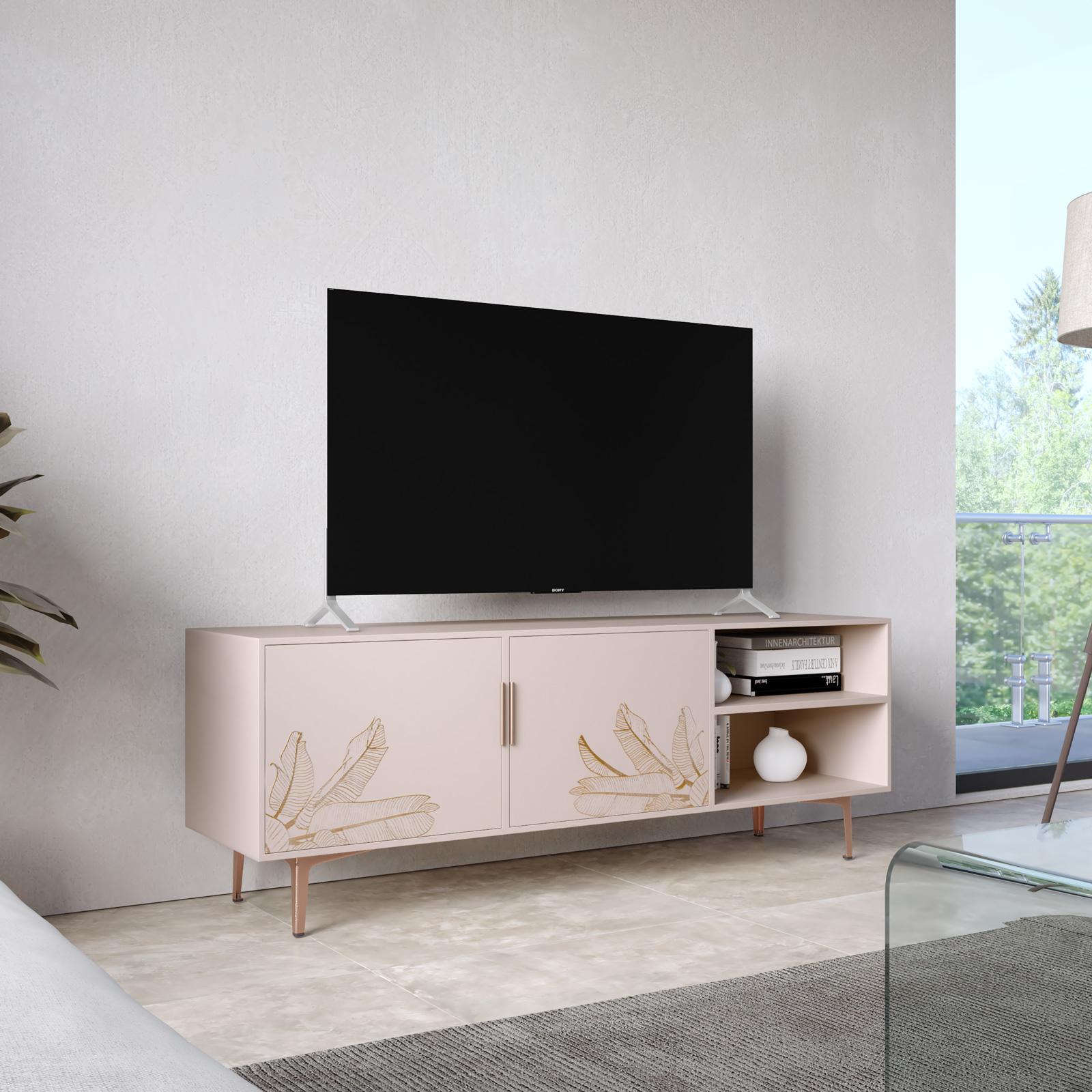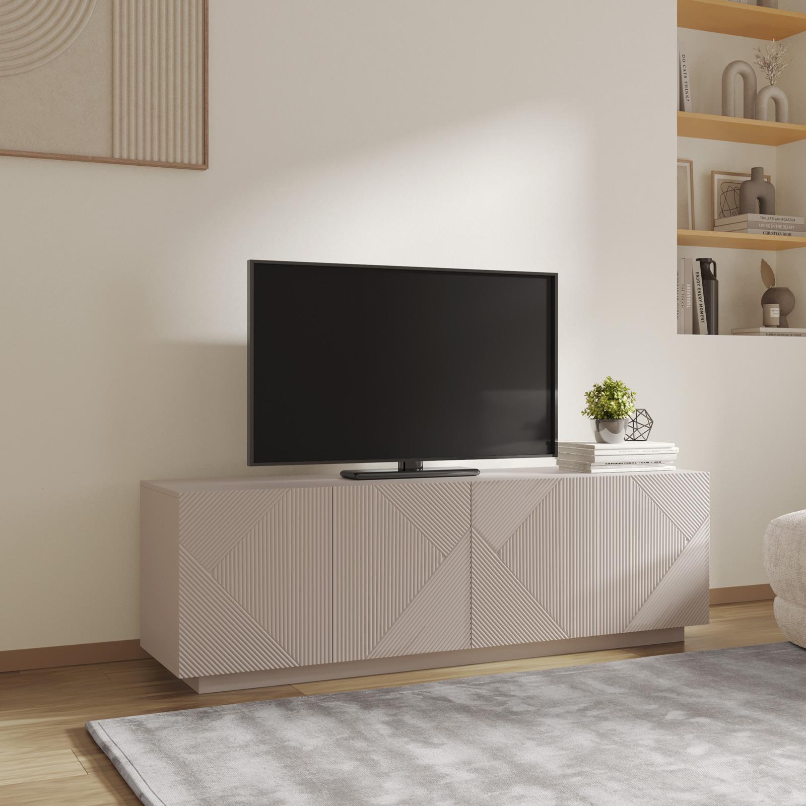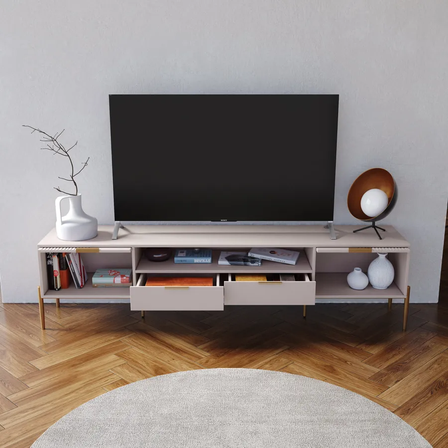 Mobile Porta Tv 205x51h Cm Con 2 Ante E 2 Cassetti Cashmere Opaco Cannettato E Gambe
