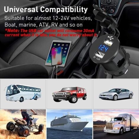 Usb Moto Impermeabile Caricabatterie Doppio USB A Ricarica Rapida Quadrato Per Moto Con Voltmetro Moto 1. Interruttore ON Off: il caricabatterie da SAE a USB per moto con interruttore di alimentazione consente di risparmiare energia e proteggere il dispositivo dal consumo della batteria. Supporta vari dispositivi elettronici con interfaccia di tipo C come telefoni cellulari, tablet, auricolari, ecc. 4. Voltmetro integrato: monitora automaticamente la batteria e l'impianto elettrico e visualizza la tensione sullo schermo, conoscerai lo stato della batteria durante la guida. 5. Come usare: 1. Il caricatore USB può essere fissato al manubrio. 2. Il filo rosso è collegato all'elettrodo positivo e il filo nero è collegato all'elettrodo negativo. adattatore offerta impermeabile caricatore cavetto connettore mictuning porte L'adattatore per caricabatteria per auto fornisce protezione da sovraccarico, sovratensione, sovracorrente, surriscaldamento e cortocircuito. 2. Impermeabile: coperchio del caricatore USB antipolvere per proteggere il circuito interno e migliorare efficacemente la durata del caricatore.