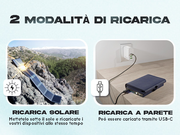 PWQ-01 Powerbank Solare 5 Pannelli Solari Caricabatterie Solare Con USB C E USB A Porte Power Bank Portatile Batteria Esterna Universale Per Cellulare