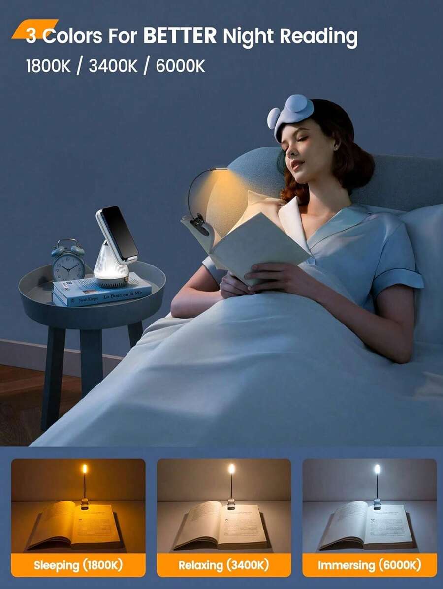 Torcia Da Tavolo A Led Con Clip Ricaricabile USB Con 3 Tonalità Di Luce E 3 Livelli Di Luminosità Lampada Da Lettura Con Torcia