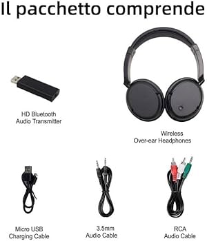Supportano quasi tutte le TV, computer, telefoni cellulari e dispositivi audio sul mercato. 1. Supportano l'associazione diretta e la connessione di tutti i dispositivi con funzione Bluetooth. Le cuffie sono un ottimo regalo per i membri della famiglia, in particolare per gli anziani e i genitori, e consentono un ascolto discreto a un volume adatto alle proprie esigenze, senza disturbare chi ci circonda. Il design ergonomico e il peso ultraleggero di soli 140 grammi garantiscono un comfort continuo anche dopo un'intera giornata di utilizzo. Assicurarsi che il televisore o il dispositivo non Bluetooth disponga di una porta di uscita audio, altrimenti le cuffie non funzioneranno. Cuffie TV Senza Fili con Trasmettitore USB per Anziani, Bluetooth Cuffie Over-Ear , Batteria 30 Ore, Archetto Retrattile Ultra Leggero Cuffie Senza Fili , Supporto Uscita Audio Coassiale Ottica RCA USB Come: telefoni cellulari, computer, TV e altri dispositivi. 2. Le cuffie sono dotate di un trasmettitore Bluetooth USB e supportano computer, TV o altri dispositivi audio senza funzione Bluetooth. VANTAGGI DELLE CUFFIE - Cuffie Bluetooth con tecnologia a basso consumo e batteria integrata da 500 mAh che può funzionare fino a 30 ore con una carica completa. Cuffie Con Filo PROW Cuffie TV Senza Fili Con Trasmettitore USB, Cuffie TV Senza Fili Per Anziani, Cuffie Bluetooth Over-Ear Per, Nessun Ritardo Audio, Durata Della Batteria Di 30 Ore, Leggere E Comode Sony Wh-1000xm5 Grazie alla qualità audio dei bassi e al suono stereo, le cuffie Bluetooth 5.3 TV sono la scelta migliore per guardare la TV, viaggiare, lavorare a casa e telefonare. CONTENUTO DELLA CONFEZIONE - 1 cuffia senza fili, 1 trasmettitore USB, 1 convertitore digitale, 1 cavo in fibra ottica, 1 cavo coassiale, 1 cavo audio RCA, 1 cavo audio da 3,5 mm, 2 cavi di ricarica. Tuttavia, è necessario assicurarsi che il dispositivo da collegare sia dotato di un connettore di uscita audio, compatibile con quasi tutti i televisori presenti sul mercato. CUFFIE STEREO HI-FI - Cuffie senza fili Bluetooth 5.3 con doppio driver stereo acustico da 40 mm per un suono chiaro e bilanciato. Parametri del prodotto: Colore cuffie: Nero Modalità di connessione: Bluetooth 5.3 Distanza di trasmissione: 10 metri Gamma di risposta in frequenza: 20Hz-20KHz Impedenza: 32Ω Sensibilità: 100 dB Ingresso audio: Interfaccia da 3,5 mm Alimentazione cuffie: 500 mAh Tipo di batteria: Batteria ricaricabile ai polimeri di litio Carica cuffie: Cavo USB Tempo di utilizzo cuffie: 30 ore Elenco dei pacchetti: 1 * Cuffie 1 * USB Trasmettitore 1 * Convertitore 1 * Cavo in fibra ottica 1 * Cavo coassiale 1 * Cavo audio RCA 1 * Cavo audio da 3,5 mm 2 * Cavo di alimentazione USB 1 * Manuale d'uso (Italiano/Inglese) Se si verificano problemi durante il processo di connessione del dispositivo, non esitate a contattarci via e-mail e faremo del nostro meglio per aiutarvi a risolvere il problema. Se il televisore o altri dispositivi non dispongono della funzione Bluetooth, abbiamo incluso nella confezione un trasmettitore USB, un cavo coassiale, un cavo ottico, un cavo audio RCA e un cavo audio da 3,5 mm; scegliendo una delle 5 interfacce di uscita sopra indicate, è possibile collegarsi a dispositivi o televisori e computer non Bluetooth. CONFORTEVOLE CUFFIE OVER-EAR - I padiglioni auricolari delle cuffie TV senza fili over-ear sono realizzati in morbida pelle proteica di alta qualità e schiuma a memoria di forma.