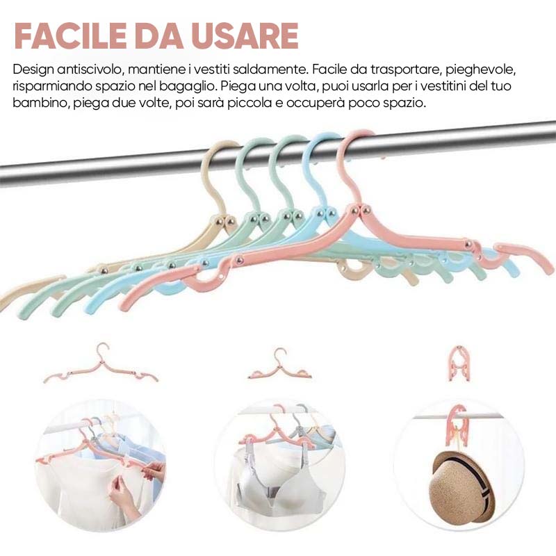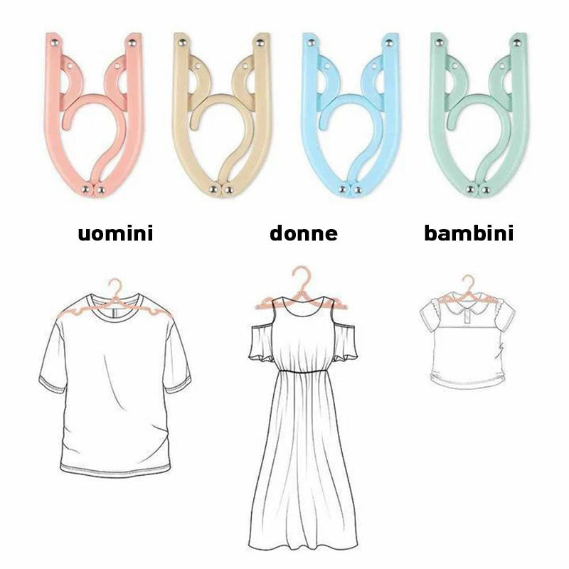 Appendino 192 Umifica Scaffali Da Viaggio Sospesi Portatili | Borsa Da Viaggio Per Appendiabiti In Acciaio Pieghevole Confezione da 4 Appendini: Include 4 appendini pieghevoli in plastica, disponibili in due colori eleganti: 2 rosa e 2 verdi. Confezione da 4 Appendini: Include 4 appendini pieghevoli in plastica, disponibili in due colori eleganti: 2 rosa e 2 verdi. Il design pieghevole e raffinato li rende ideali per viaggi di lavoro, campeggio e uso domestico Risparmio di Spazio e Facilità di Conservazione: Gli appendini pieghevoli da 34g si inseriscono facilmente nelle tasche dei bagagli, risparmiando spazio senza alcuno sforzo. La superficie liscia e la curva perfetta proteggono i vestiti da graffi e danni. Il design antivento assicura che i vestiti non cadano facilmente. Materiali di Alta Qualità: Realizzati in plastica PP e alluminio resistente, gli appendini Sazfli sono robusti e resistenti alla deformazione, piegatura e rottura. Compatti quando piegati (13,5x6,4 cm), si estendono a 40,6x14 cm per l'uso quotidiano.