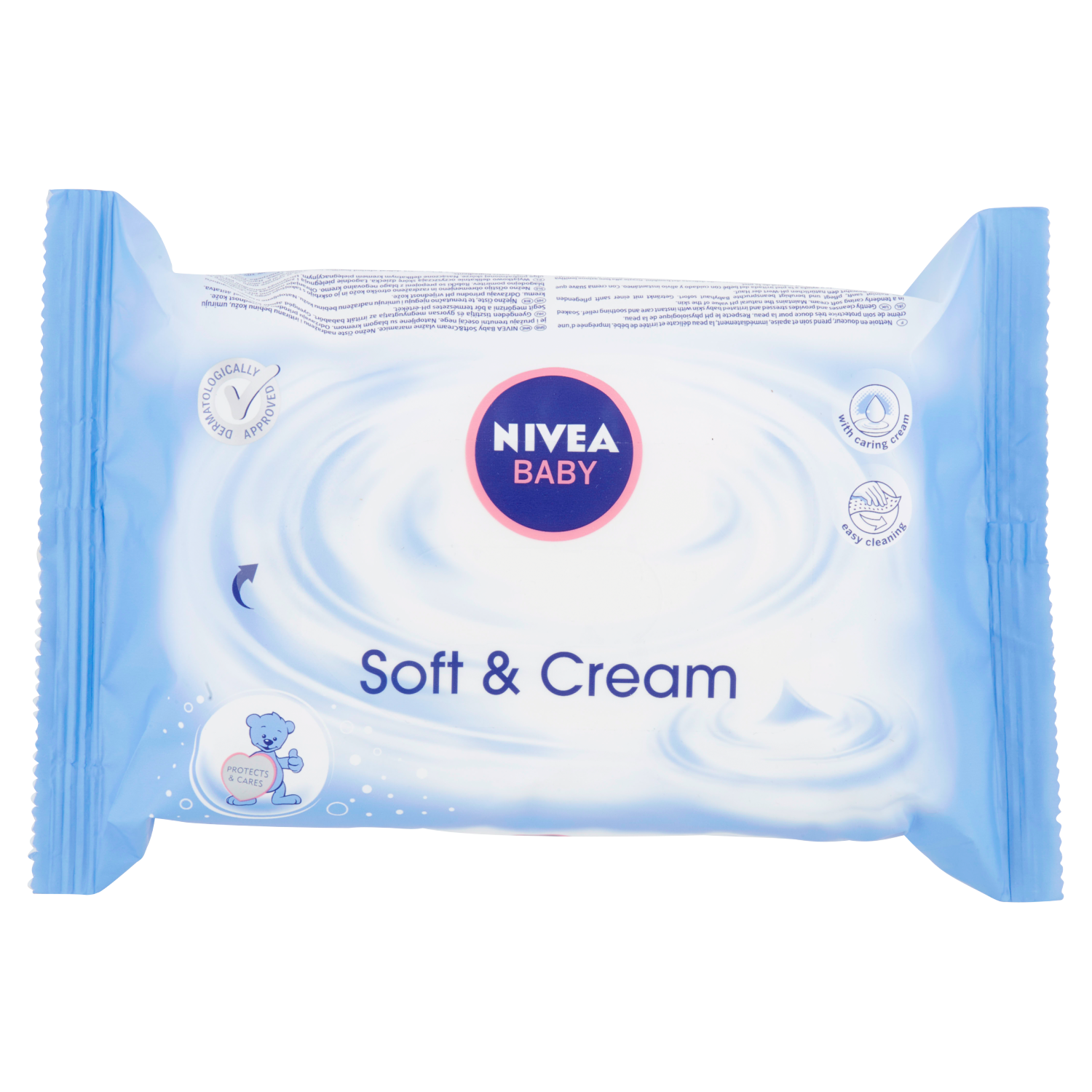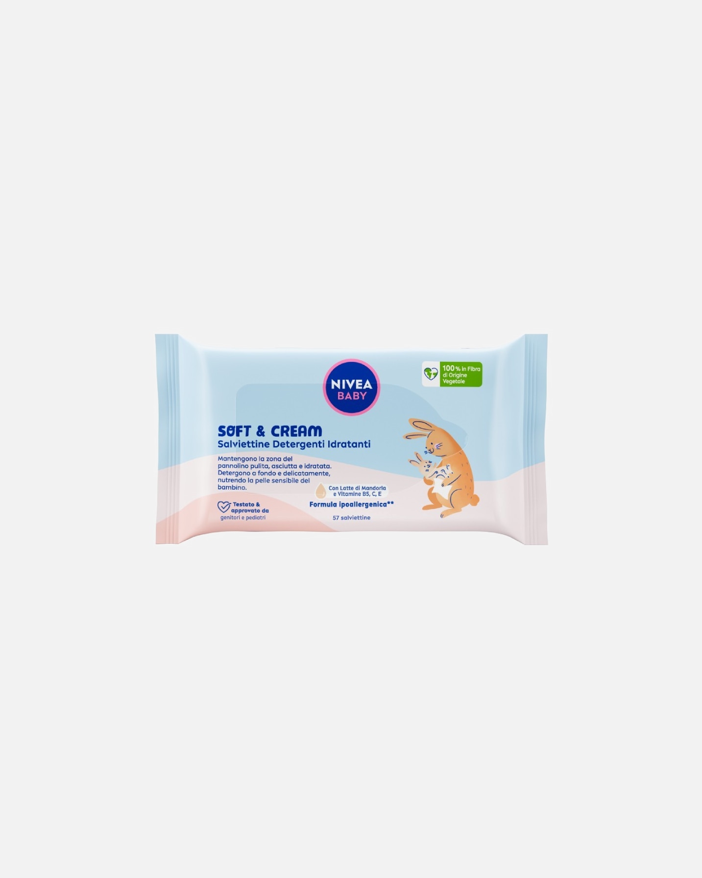 NIVEA BABY Salviettine Detergenti Idratanti Soft & Cream 57 Pezzi, Salviette Neonato Per Una Pelle Pulita, Asciutta E Idratata, Salviettine Neonato Con Latte Di Mandorla E Vitamine B5, C & E