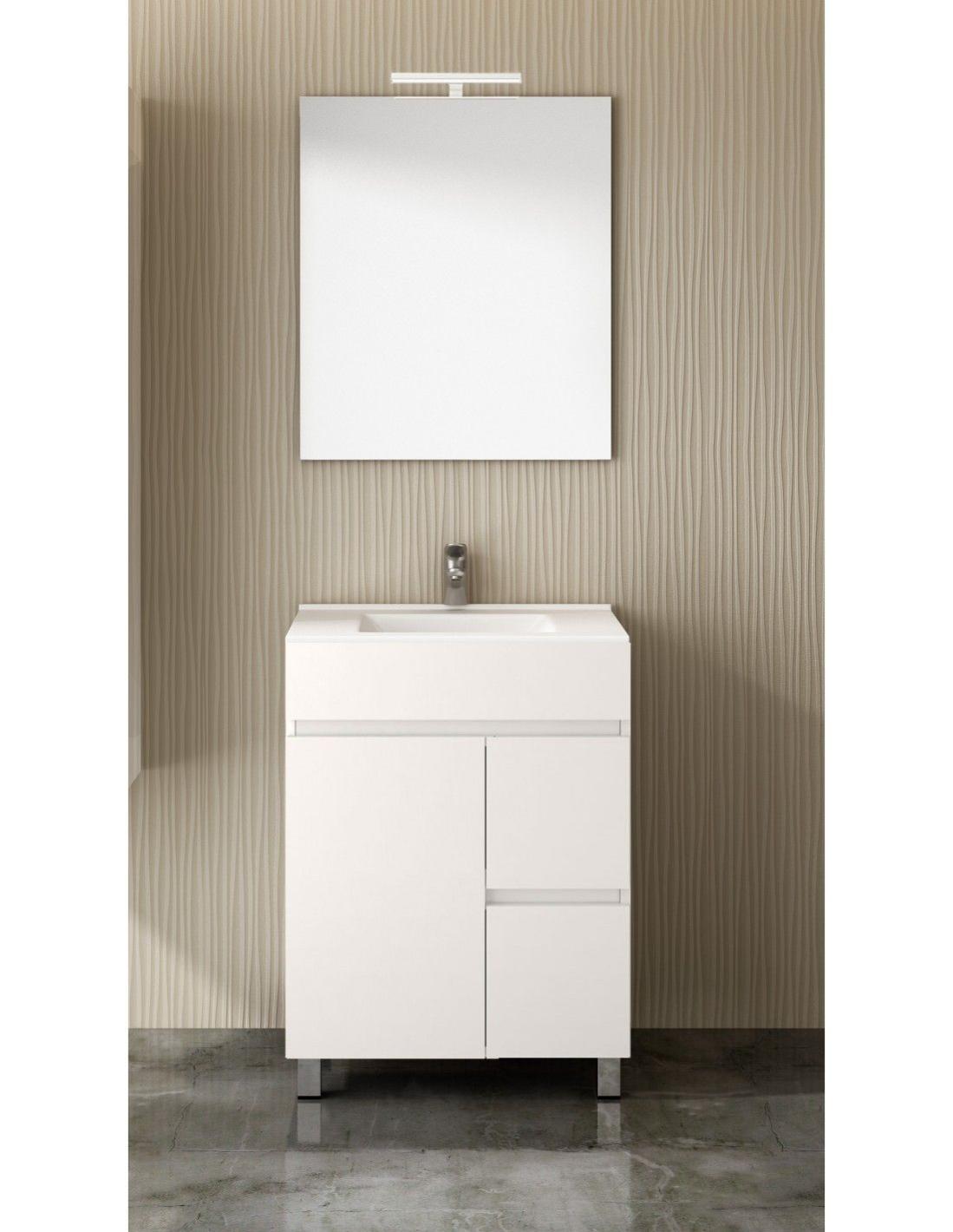 Mobile Da Bagno Sospeso Itaca - 2 Cassetti E Una Porta Include Lavabo E Specchio Bianco Nordico 120x45cm 2 Seni 87279799
