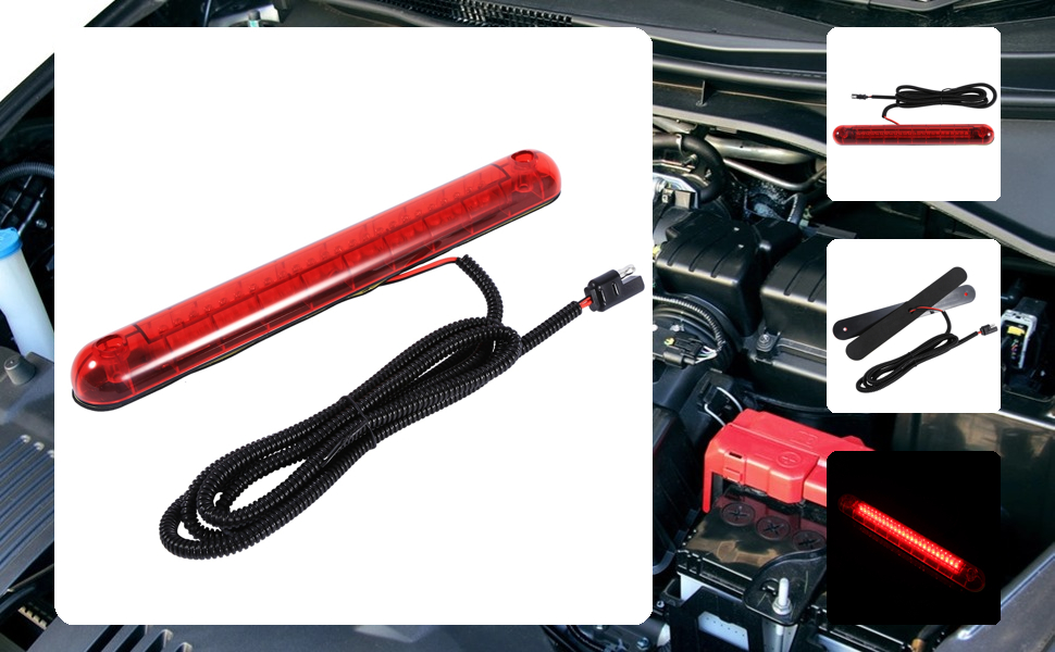 Biqing Luci LED Terzo Stop,Universale 12V 24V Luce Di Arresto Posteriore Rosso Terzo Portellone Posteriore Alto Livello Per Rimorchio Camion Barca RV