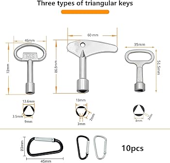 2 chiavi diverse: questo set di chiavi universali è disponibile in 4 diverse forme tra cui quadrato, triangolo e cerchio in diverse dimensioni. Forme diverse possono essere applicate a diverse occasioni e riducono il peso causato dal trasporto di più uten 【Versatile】 Questo set di chiavi universali è disponibile in 4 diverse forme, tra cui quadrato, triangolo e cerchio di diverse dimensioni. 【Chiave multifunzione a 4 vie】 La chiave dell'armadio elettrico è multifunzionale e può aprire porta della cassetta degli attrezzi, porta elettrica, contatore dell'acqua, contatore elettrico, radiatore, contatore del gas, ascensore, armadio elettrico, ecc. Chiave A Croce Chiave Universale Per Serrature Chiave A Triangolo A 4 Vie Multifunzione A Triangolo Triangolare Universale A Croce Per Rubinetto Armadio Elettrico Chiave A Chiave Multi-specifica Armadio Elettrico Chiave Elettrica Gabinetto Di Chiave Amazon Chiave Universale 【Applicazione】La chiave universale è adatta per armadi elettrici, quadri elettrici, climatizzatori, valvole di ventilazione e di ispezione e alette su lampade, bidoni per rifiuti, cassonetti, ecc. 【Materiale】 La chiave per armadio elettrico a croce realizzata in lega di zinco robusta e stabile con una superficie cromata che è resistente alla corrosione e non arrugginisce facilmente.