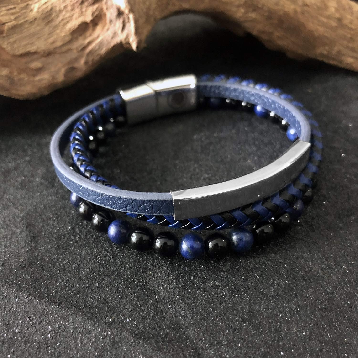 Casisto.J Bracciale Pelle Uomo, Classico Bracciale Intrecciato A Mano Nero E Marrone Braccialetto Con Magnetica Fibbia : Amazon.it: Moda