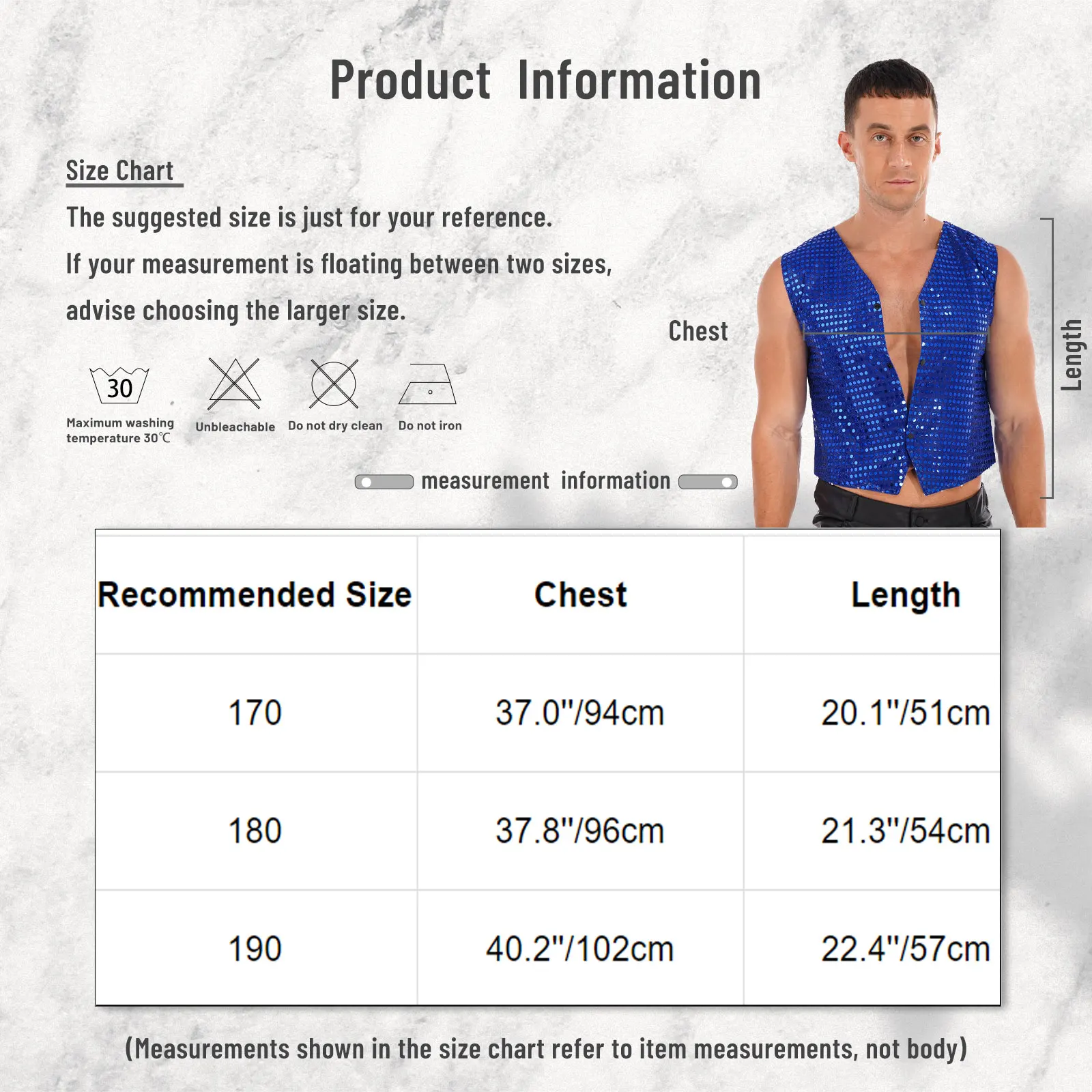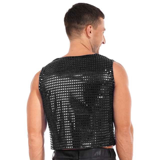 Mymyguoe Gilet Da Uomo Con Paillettes Luccicanti Con Scollo A V