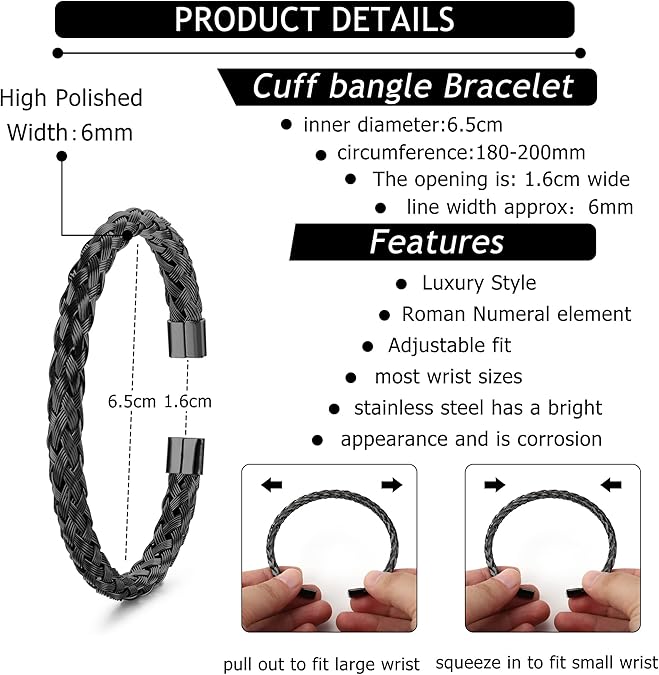 Bracciale In Acciaio Inox Uomo Bracciale Barakà Da Uomo In Acciaio 316L E Oro Rosa BR312801ROGR210002 – JOY Gioielli Braccialetti In Acciaio Uomo 【Dimensioni del bracciale da uomo】Lunghezza del bracciale da uomo: 180 mm (7 pollici) – 200 mm (7,87 pollici), larghezza: 60 mm (2,36 pollici), adatto per la maggior parte delle persone, altri due bracciali sono regolabili, disponibili nei colori argento, oro o nero, per i dettagli si prega di fare riferimento alle immagini Lamù Gioielli è un'azienda che realizza, produce e commercializza Bracciali per Uomo utilizzando l'acciaio inox, dando così vita ad un prodotto anallergico. Ricerchiamo continuamente nuovi materiali di qualità, costantemente siamo attenti ai cambiamenti e Regalo perfetto: questi braccialetti in acciaio inox sono maschili, si adattano perfettamente agli uomini e non passano mai di moda. Servizio clienti: FIOROYAL offre ai clienti un servizio di rimborso e sostituzione di 365 giorni. Risponderemo alla tua domanda entro 24 ore. Che tu stia indossando un tailleur o un abbigliamento casual, questi braccialetti da uomo di lusso sono molto adatti e ti renderanno più popolare. Sono un ottimo regalo per papà, mariti, amici e altri amici.