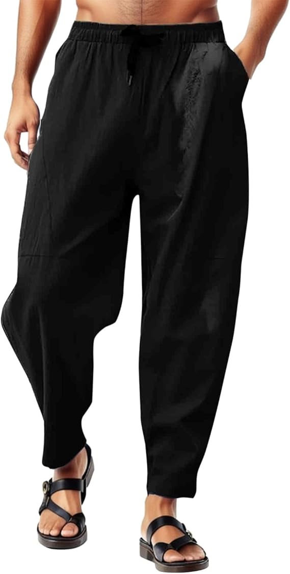 Pantaloni Casual Da Uomo In Lino E Cotone Yoga Elastici In Vita Pantaloni Estivi Uomo Lunghi Lino Loose Fit Cotone Pantalone Comodi Pantaloni Con Tasconi Uomo Pantaloni Uomo Con Elastico In Vita : Amazon.it: Moda