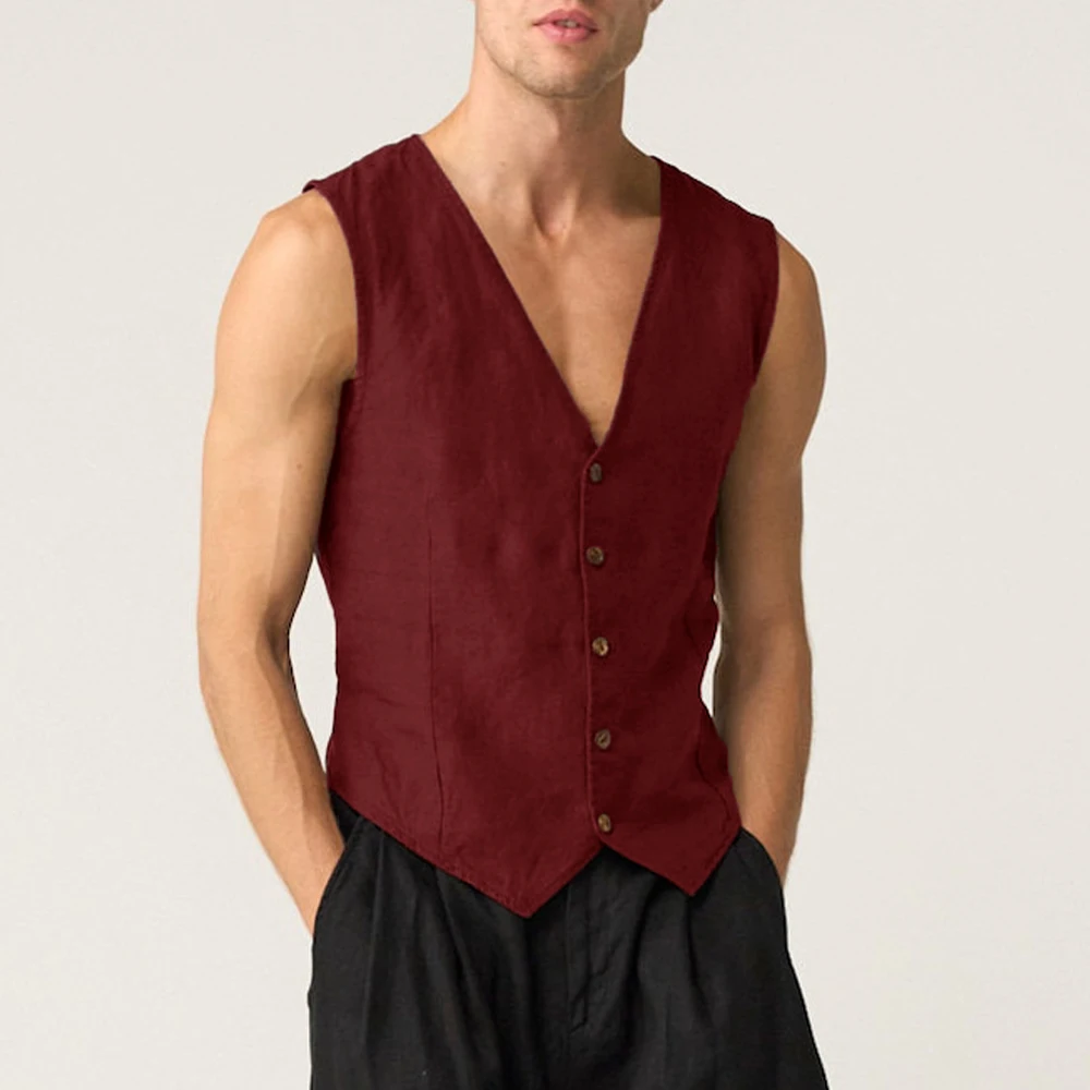 Gilet Da Uomo In Lino - Gilet Estivo - Casual - Banchetto - Blazer