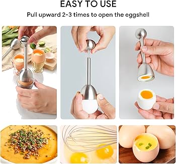 Uova Bianche VINEST 4 In 1 Taglia Uovo Sodo, Taglia Uova Sode, Rompi Uova è Rimovibile E Facile Da Pulire Realizzata In Acciaio Inox 304 E Plastica ABS, Utilizzata Per Tagliare Uova