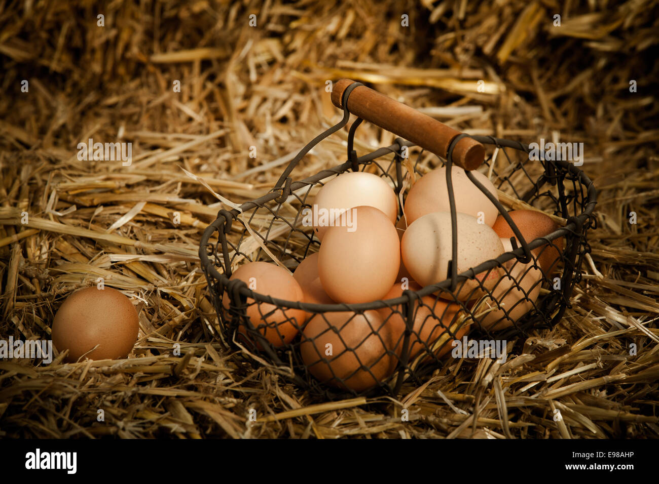 Cesti Porta Uova Nel Metallico, Porta Uova Un Forma Di Gallina, Cestini Rotondi Rustici Raccogli Uova Con Manico