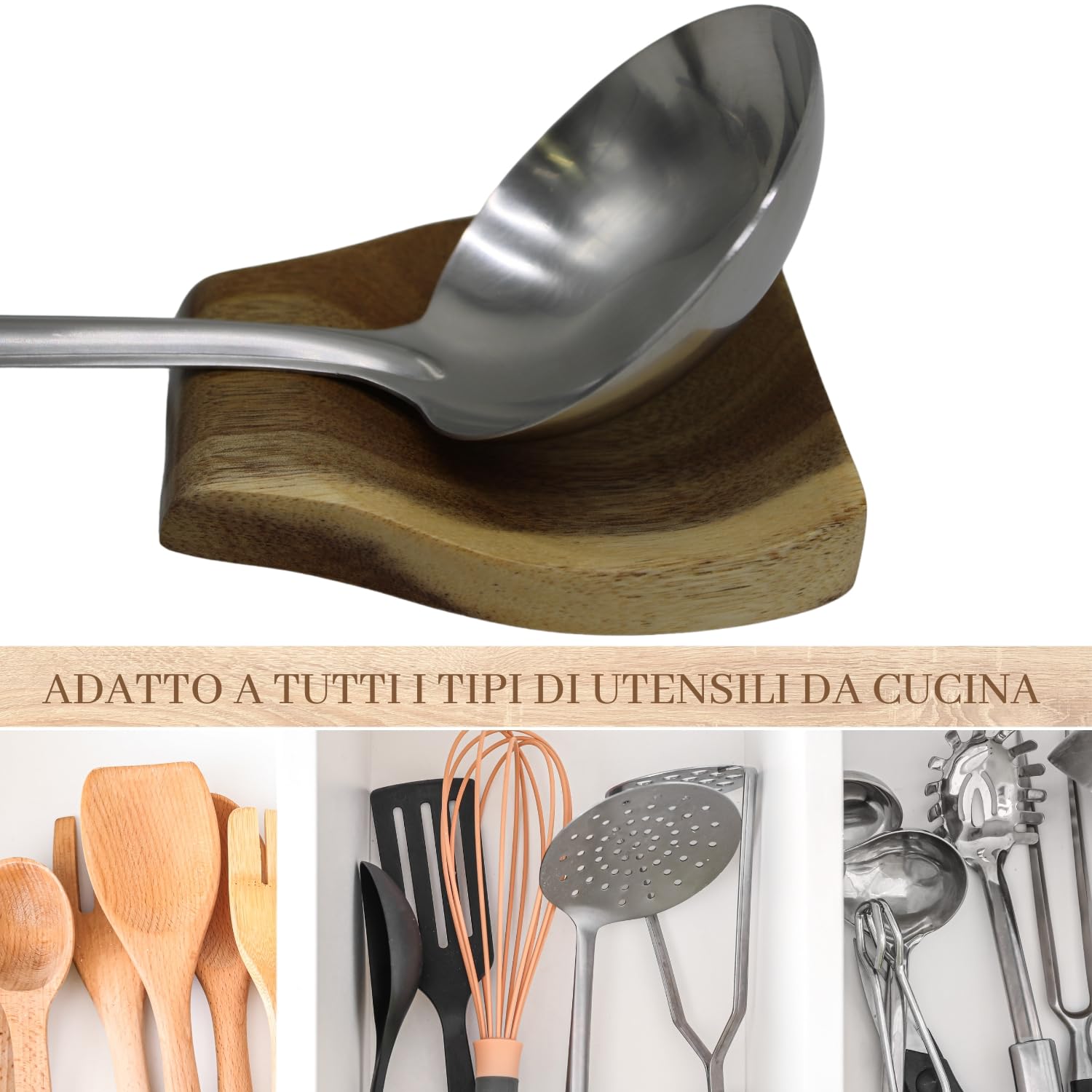 Amore Legno Sforza Poggiamestolo In Legno, Utensile Poggia Posate Cucchiaio E Mestolo, Posa
