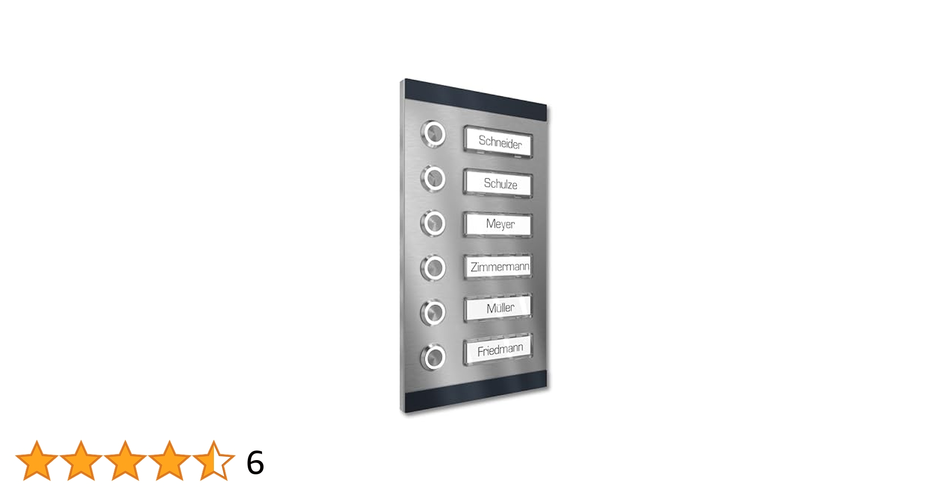 Con il solo nome di famiglia, con il solo nome di battesimo o con il nome e il cognome insieme, la scelta è vostra. Per il fissaggio, è possibile scegliere tra bulloni filettati con tasselli a innesto o tasselli ETICS. Il pulsante del campanello - Libera scelta del colore del pulsante del campanello. In questo modo, la piastra campanello non necessita di un ulteriore collegamento alla rete elettrica. Colonna campanello per 2 persone in acciaio inox V2A 1.4301 da 1,5 mm, verniciato a polvere in colore RAL o DB con numero civico, targhetta e telecamera Questi materiali sono facili da pulire e resistenti agli agenti atmosferici. Su misura per voi - Cliccate su Personalizza ora e progettate la piastra campanaria secondo i vostri desideri. Citofono Senza Fili Da Esterno Targa Per Campanello In Acciaio Inox V2A Con Incisione Di Graviers Design – Verniciato A Polvere Citofono Wifi Graviers Design eleganti insegne per porte in acciaio inox e acrilico Siete alla ricerca di un elemento di spicco per il vostro ingresso? Allora siete nel posto giusto. La fornitura comprende una piastra campanaria pronta per il montaggio, in acciaio inox e della dimensione desiderata. Antiruggine - Questo campanello per la porta d'ingresso è inoltre verniciato a polvere in colore RAL 7016 antracite - opaco. Nella piastra del campanello è incorporato un trasmettitore alimentato a batteria. Sostituibile: Il campanello è dotato di un inserto in carta, in modo da poter cambiare il nome in qualsiasi momento. Il campanello a superficie è fissato alla parete della casa e non deve essere incassato nel muro. Grazie all'illuminazione delle targhette, selezionabile a scelta, le scritte sono visibili anche di notte.